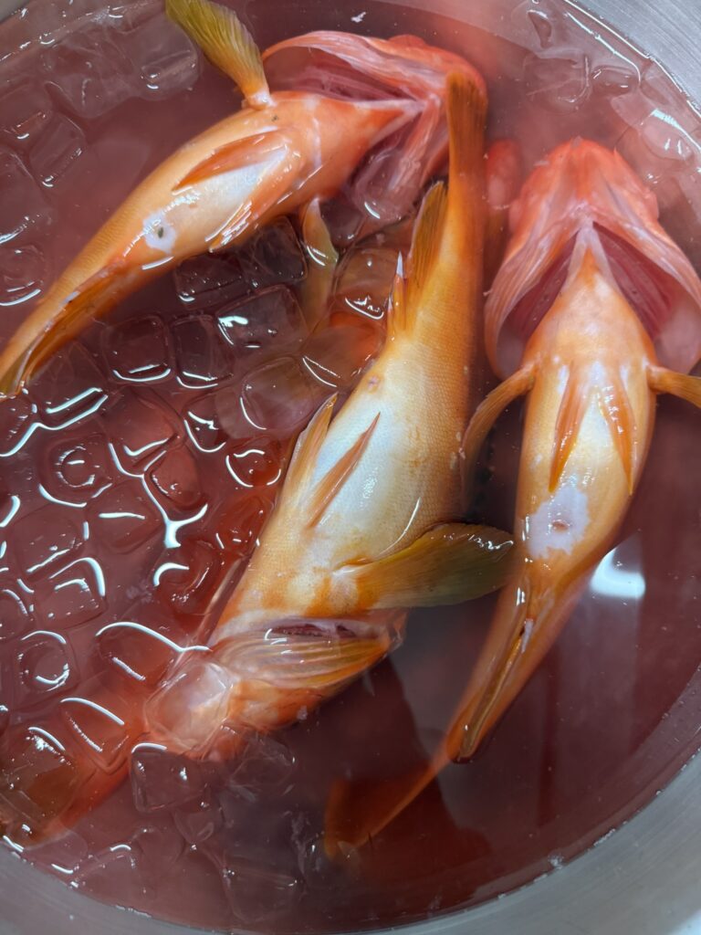 GW中に海が荒れてしまい、式根の漁師がなかなか船を出せず、必要な魚が足りずに困っていたところ、事情を汲んだ常連釣り師くんたちが、頑張って釣り集めてくれました。ありがとう!