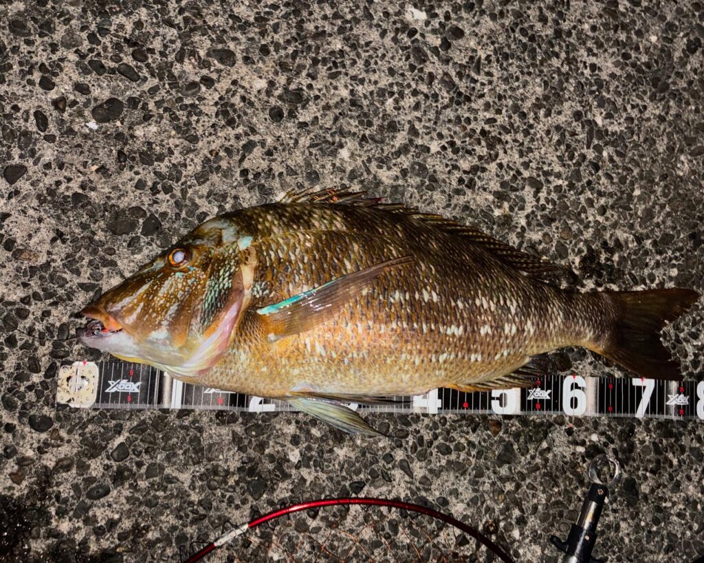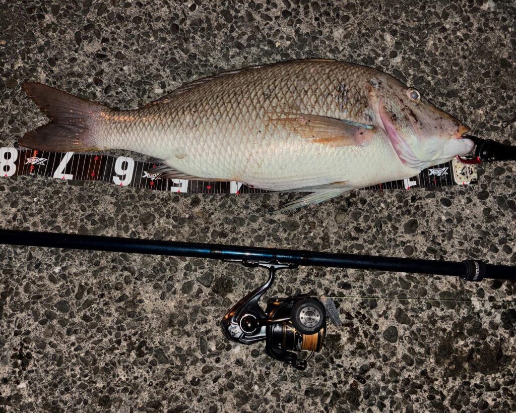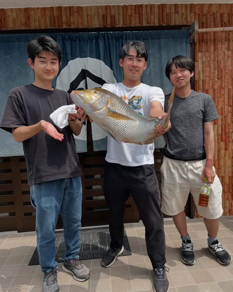 式根島の釣果|釣ったど!獲ったど! 式根島1泊弾丸釣行でタマン80cm!6.5kg 2025年7月6日 hidabun 伊豆諸島は全部回ってるという釣り同好会の皆さん。ゲストハウスひだぶんのご利用は、このたび3回目で、今回は1泊の弾丸釣行。 夏らしく、タマン80センチ6.5キロなど、大物釣りを楽しみました!