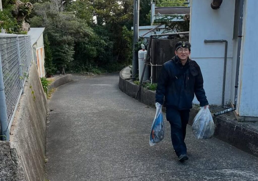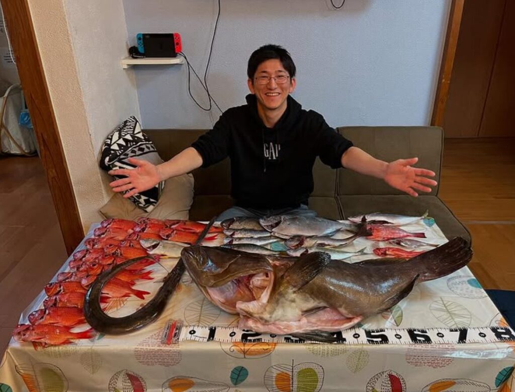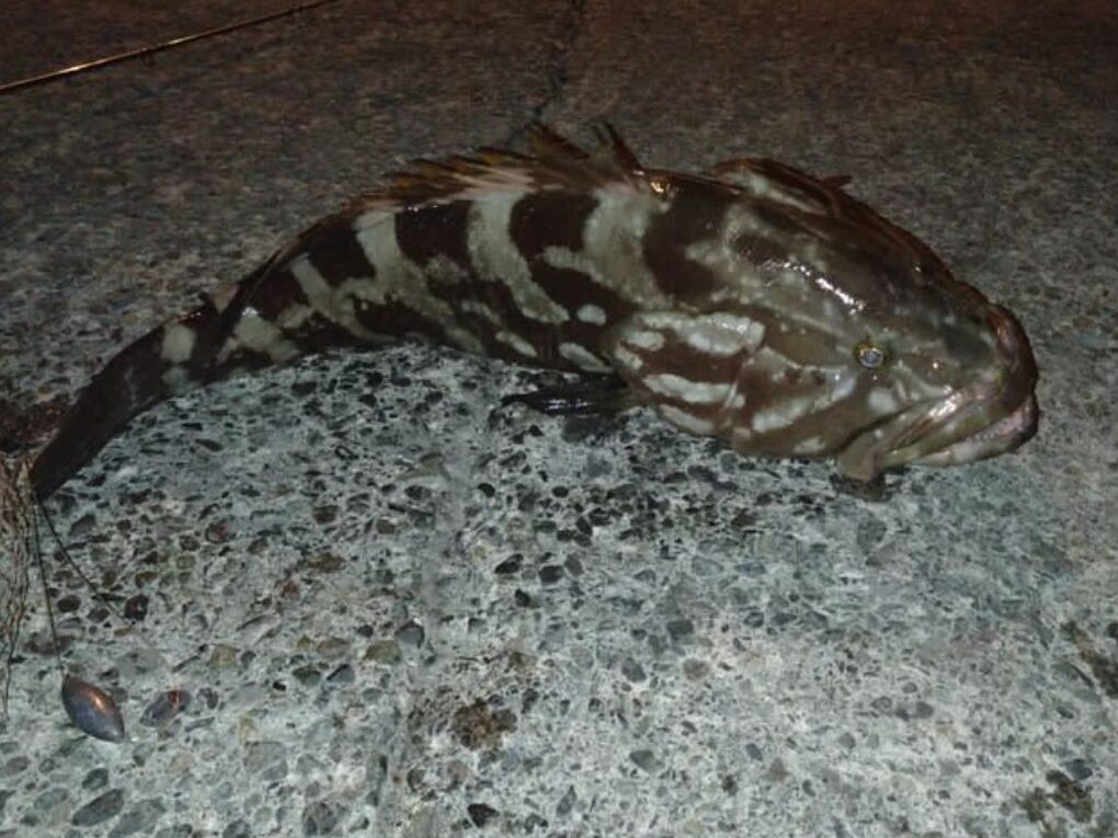 85センチ、8.5キロのクエを釣りました。場所は夜の野伏港の堤防際、エサはゲソ。撒き餌にゲソとイカの内臓を使ったそうです。欠航で延泊になっちゃったけど、ご褒美で桟橋から良型クエ!夢がありますね!