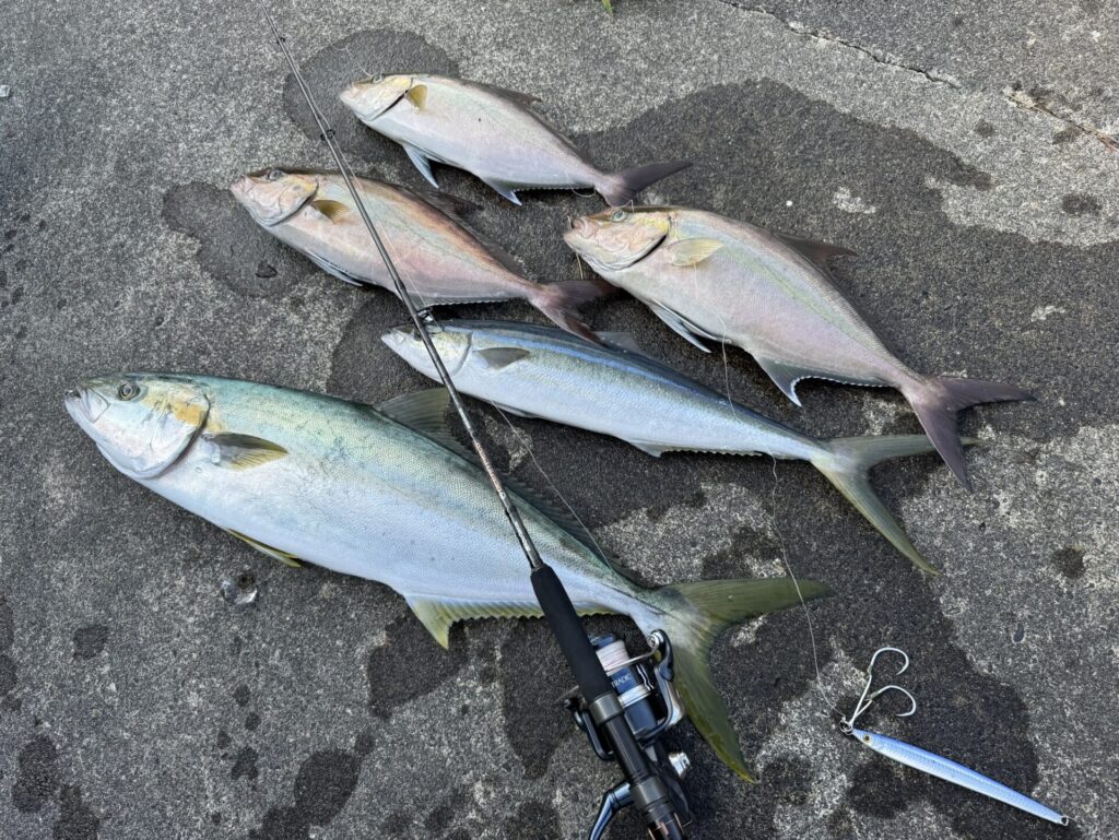 釣り上げたそれはよく肥えていて、あげた直後の体色も相まってブリでないかと一瞬思いましたが、同じ大きさのブリとは比べ物にならない引きの強さと上顎背後の形から明らかにヒラマサです。ブリとそっくりさんですが、引き味や食味を比べると全然違う魚だなあと痛感しました。