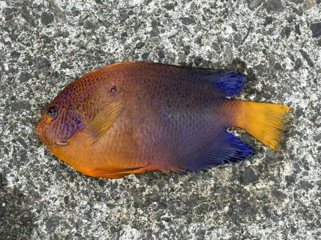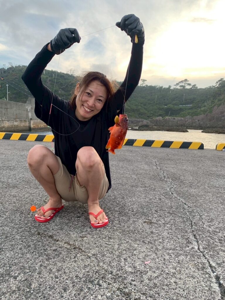 釣りもみんなで楽しみます。周りも渋い中、大きなオニカサゴをGET!アカハタも釣れました。特筆は珍しい「レンテンヤッコ」。アクアリウムの相場は6万円~もする観賞魚として知られています。