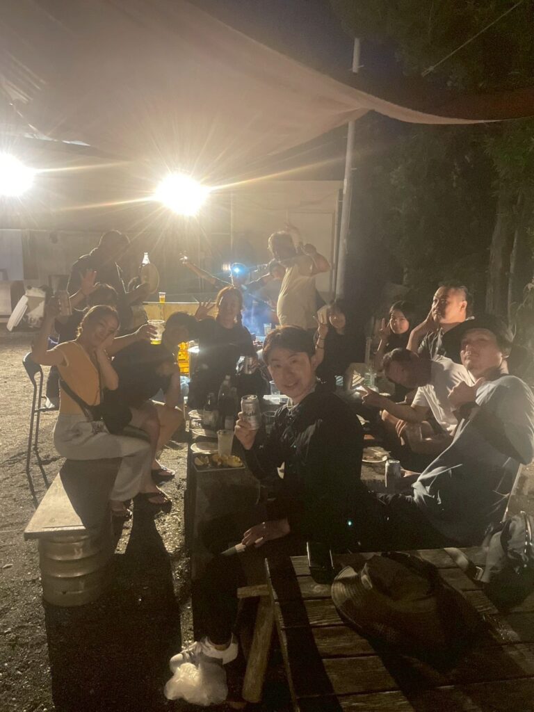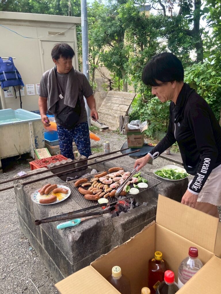 ひだぶんの内装工事を担当していただいて以来、毎年、大人数で式根島に来てバカンスを楽しんでくださる常連チーム。今年は16名で初来島の方や学生さんなど一層にぎやかに!プロの魚屋さんも同行して、何が釣れても怖いものなし(笑)式根島を満喫し尽くしました!
