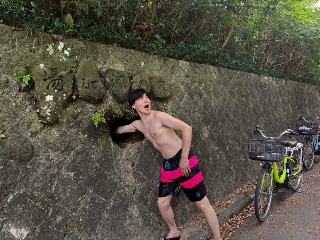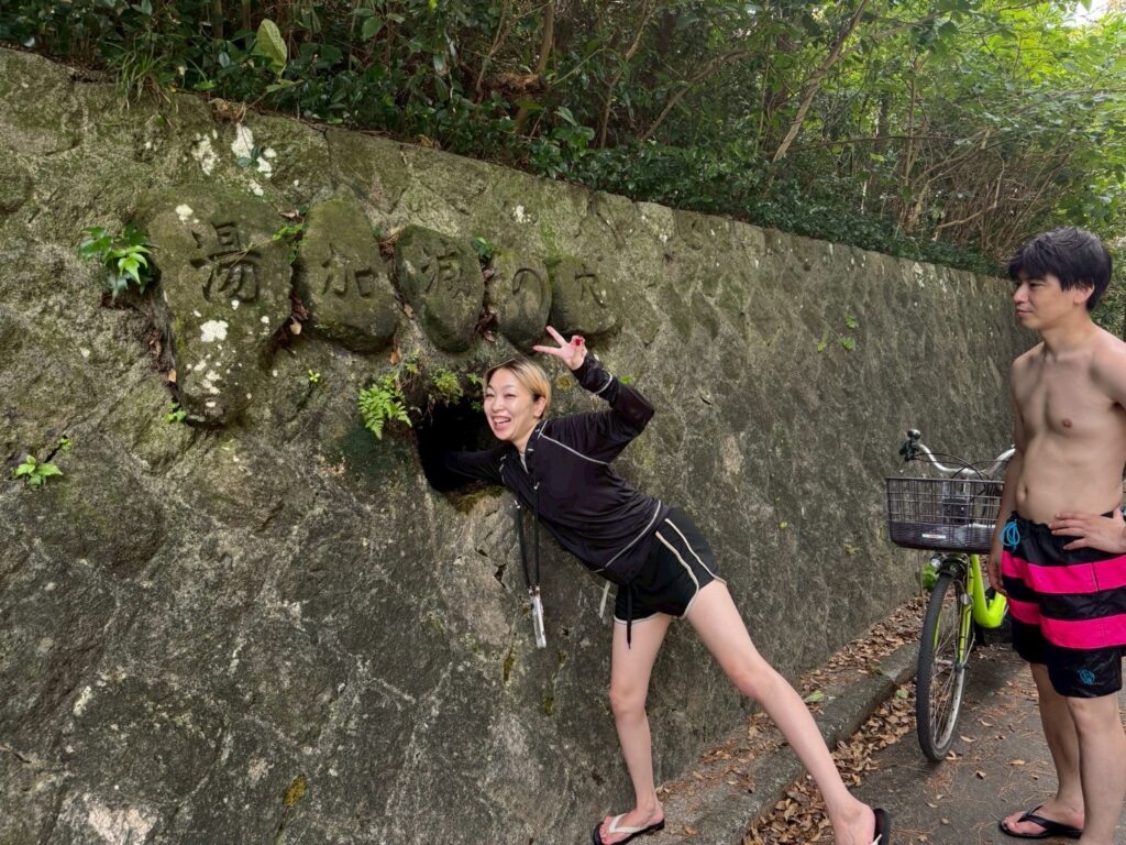 レンタサイクルを借りて水着のまま神引展望台や湯加減の穴へ。コンパクトサイズの式根島の王道スタイルです。