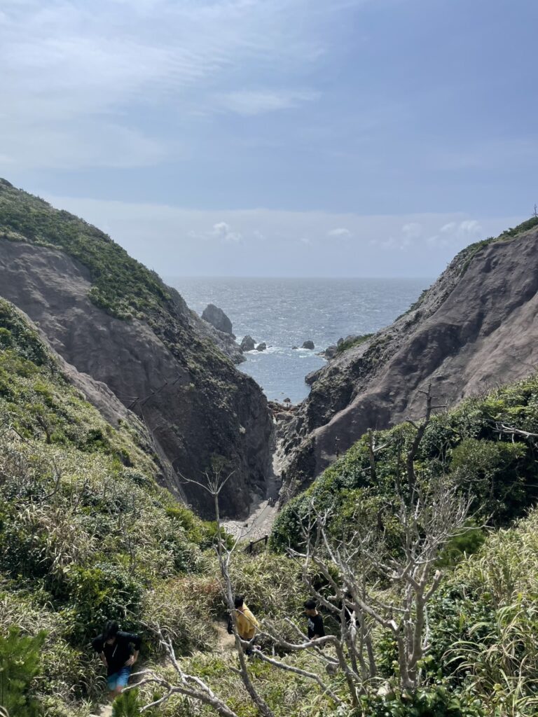 温泉天国・式根島。地鉈温泉は外せません。谷底に見える温泉を見下ろすと、帰りが心配になりますが、つづら折りの階段でわりとあっさり到着できますのでご安心を。地鉈温泉の周りで泳いで、温まりたくなったら温泉ゾーンへ。行き来しながら、泳ぎと温泉を両方楽しむのが温泉達人スタイルです。