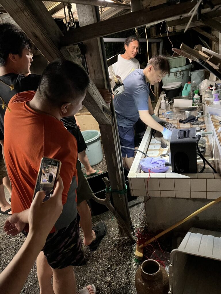 そして、なんと!半身を宿にいただけることになり、深夜に突然、ひだぶんクエ祭り開催!!