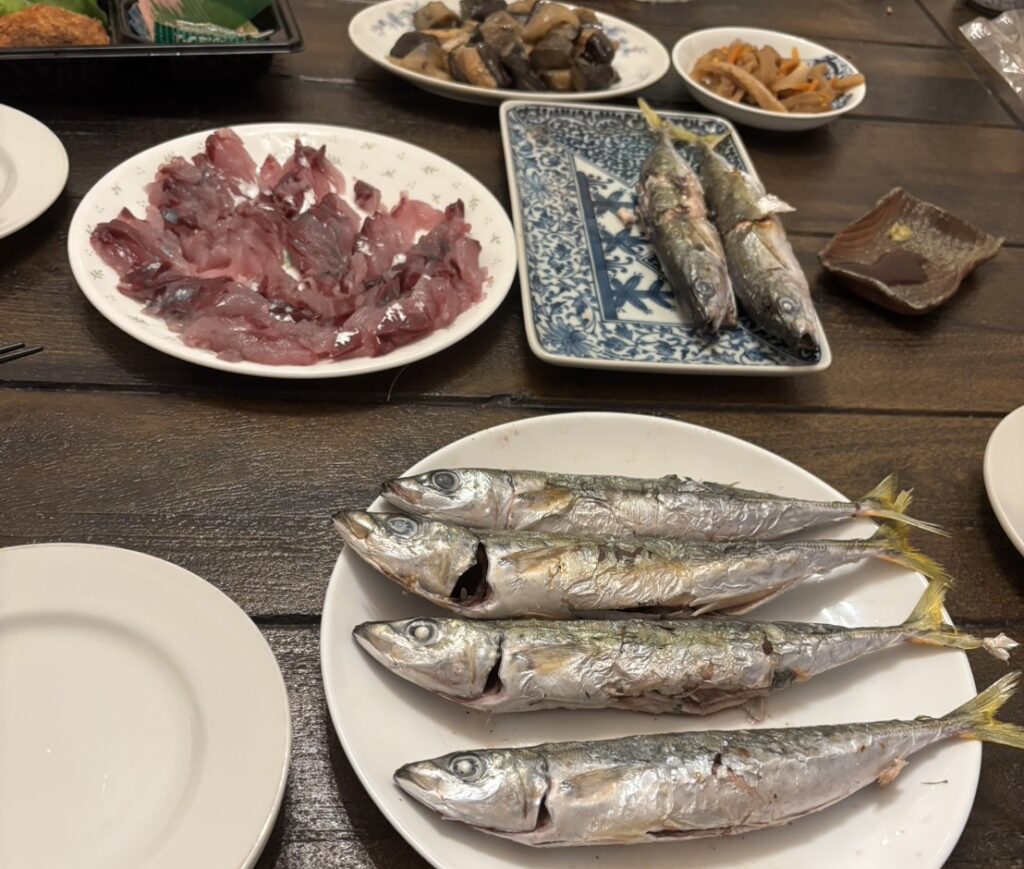 宿に戻ったら、「うわ!爆釣!」「行かなきゃ!」と高校生が慌てて港に飛んで行きました。