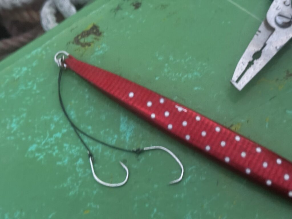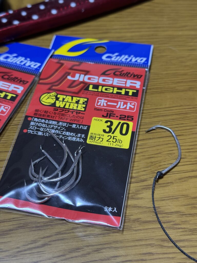 初日の夕方はハタと思われる魚にフックを伸ばされてしまいました。