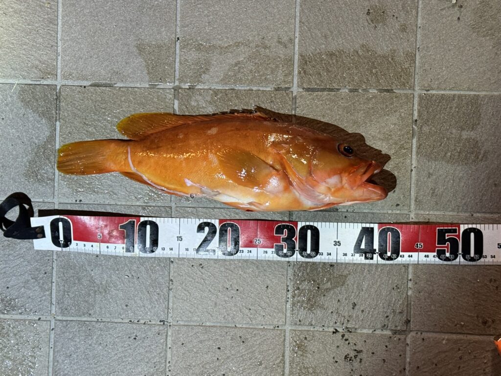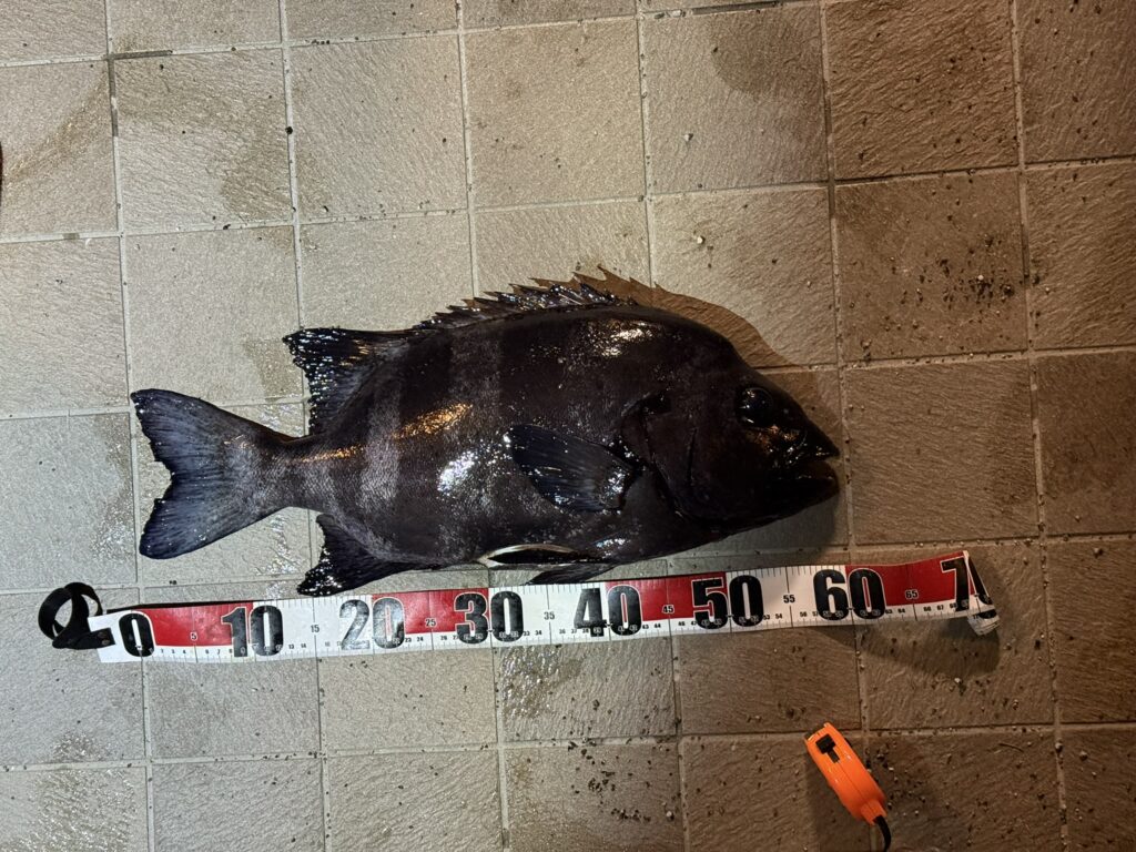 2日目は石鯛60㎝、50㎝強、40㎝強と3枚、イシガキダイ40㎝クラス1枚、なかなか見ないアカハタ42㎝と、美味しいお魚が5枚。