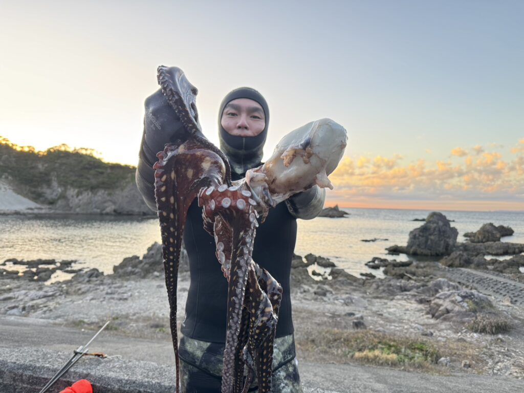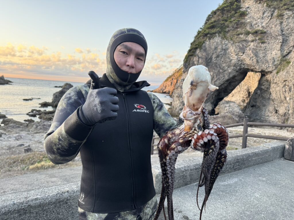 10月に大物・クエをしとめたモリ突き師が、またまたご来島。今回の成果をご紹介します!