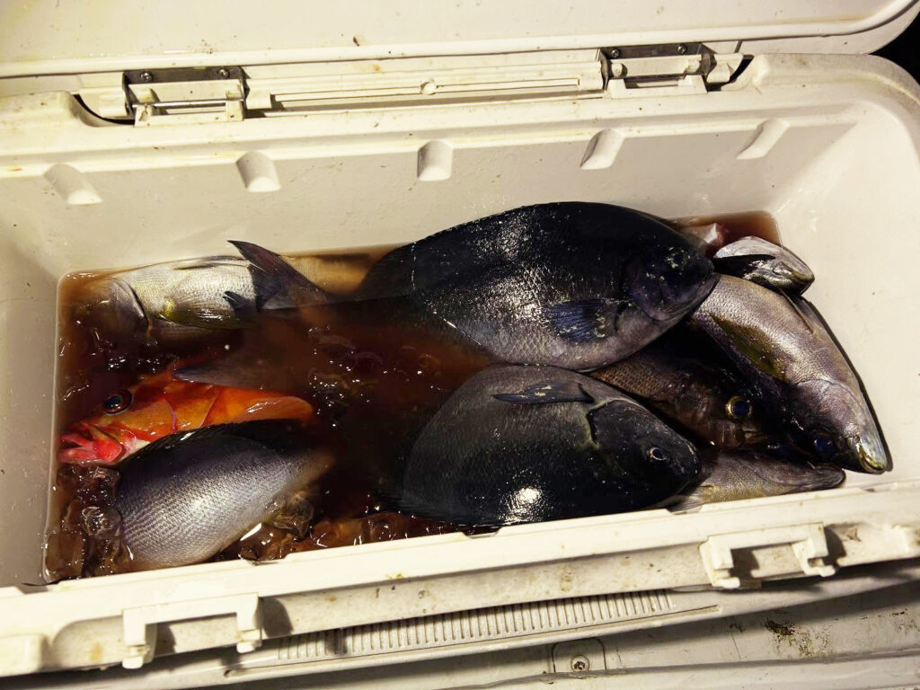 1番の引きは48㎝の腹パンで、離島らしい魚が釣れてホッとしました。