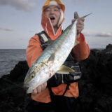 この年末年始は食べ頃サイズの美味しいアオリイカがよく釣れました。アオリイカは、風が強い日でも桟橋で手軽に釣れますので、冬の式根に来る時は、エギングロッドとエギをお忘れなく!