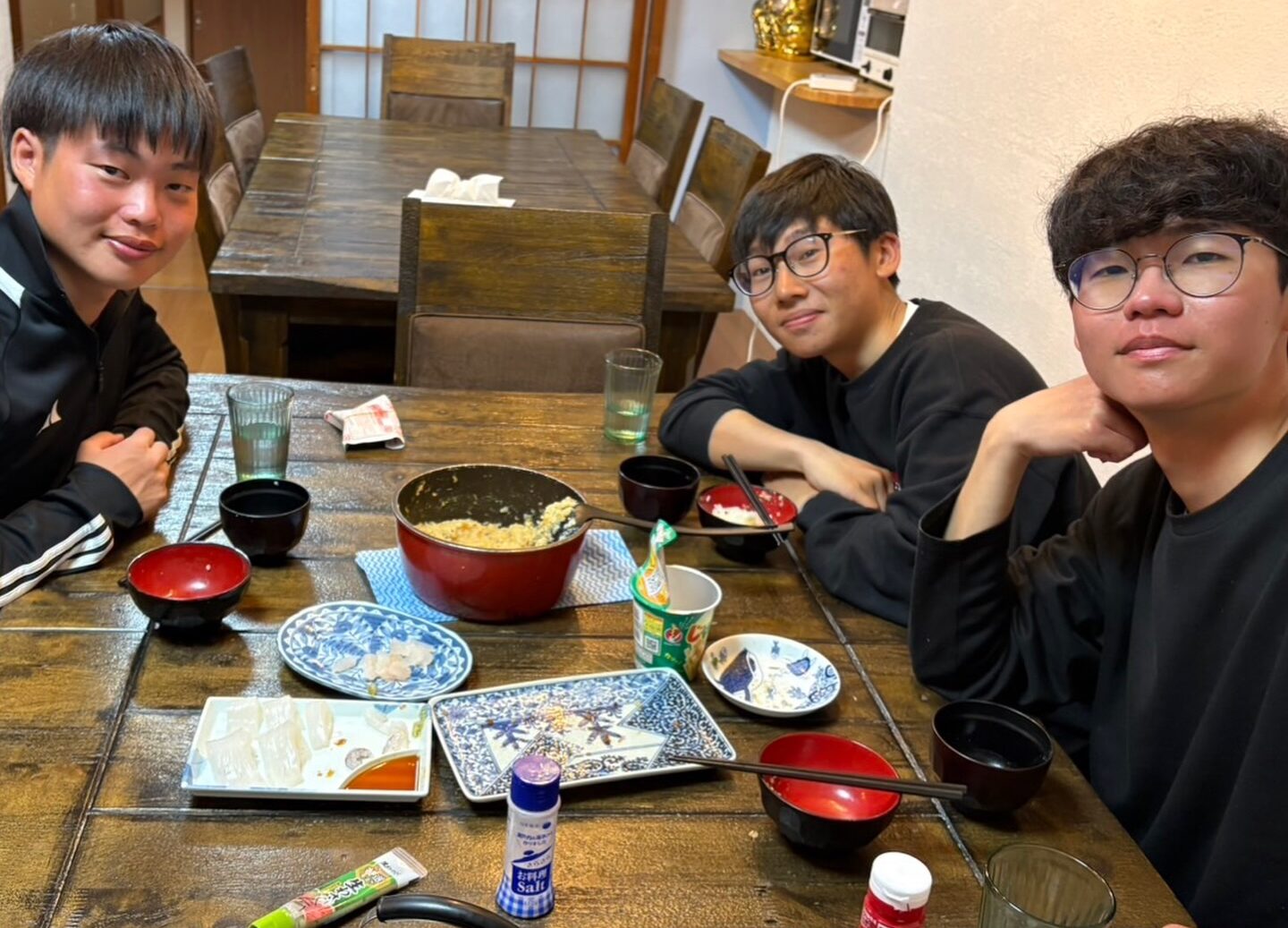 ミニキッチンで、さっそく石鯛を調理して美味しく食べていました!