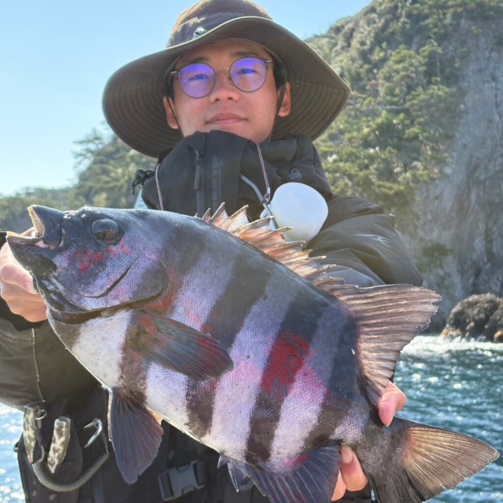 釣り部のみなさん、桟橋で本石45cmをゲット!お見事です!