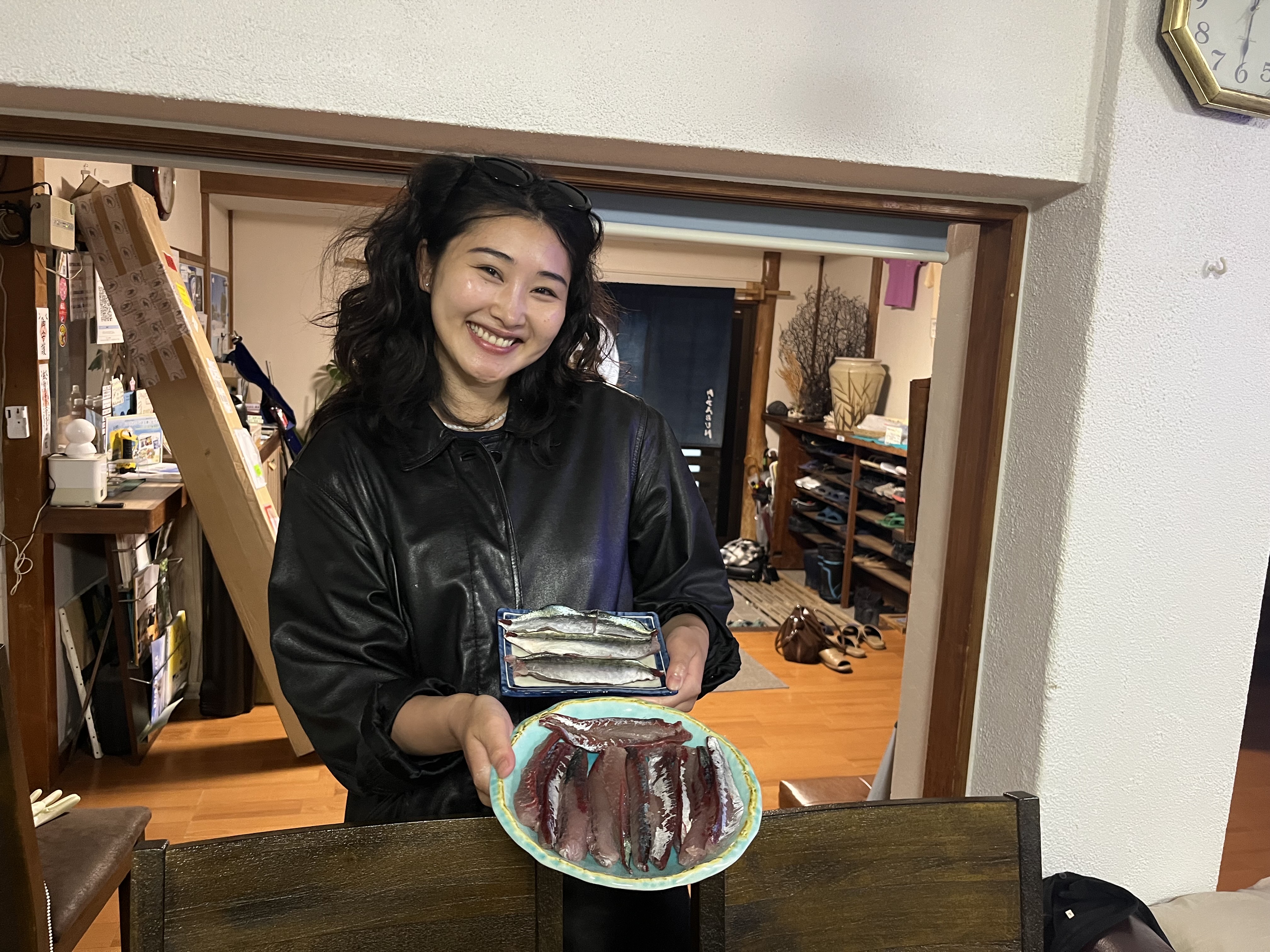 さらに、ムロアジ釣りに挑戦して、なかなかの釣果をおさめました。さばき方も同宿の方に教えてもらい、この通り!