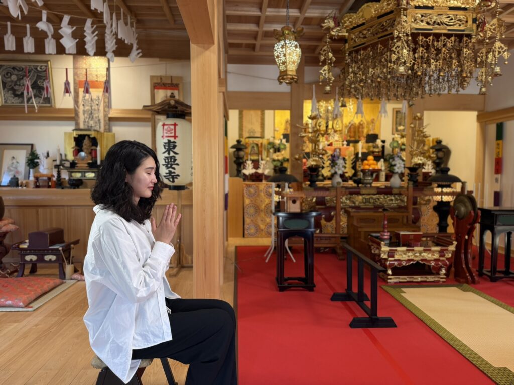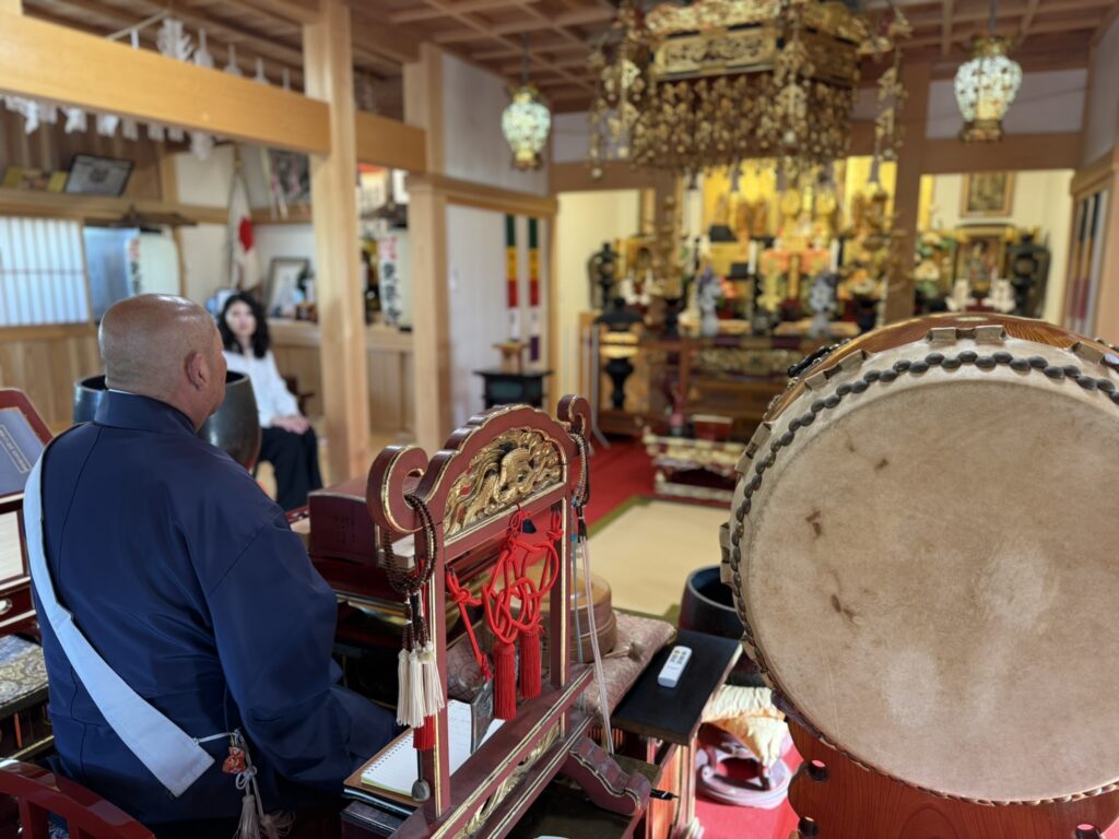 特筆はゲストハウスひだぶんから歩いてすぐの式根島唯一の寺院・東要寺での勤行参加と瞑想体験です。