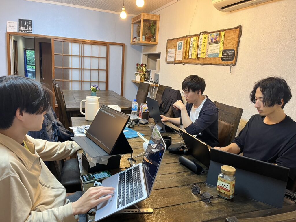 ひだぶんゲストブック 男子3人組の1weekワーケーション! 2025年6月6日 hidabun ITむんむんな男子3人組が1週間のワーケーションでひだぶんに泊まってくれました!働くときは働き、遊ぶときは遊ぶ!ひだぶんには1週間2週間1か月のお得な長期滞在プランがありますので、ぜひワーケーションにお越しください。
