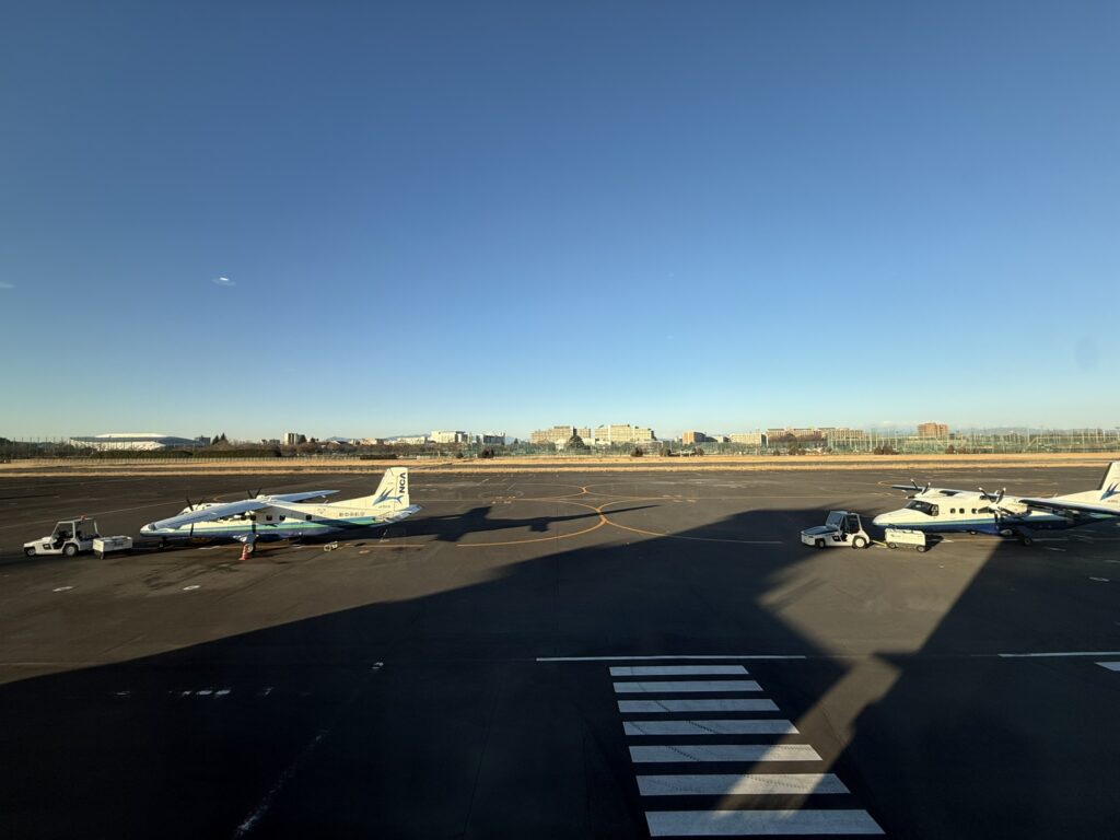 飛行機のメリットはなんといっても早いことと、気流が安定していれば海が荒れていても欠航しないので、ひとまず新島までは到着できること。長時間、船に乗るのが厳しい方にもおすすめです。ポイントは新島空港から新島港の移動手段を考えておくこと。今回は一番くわしい飛行機+船のアクセス方法をご案内します。
