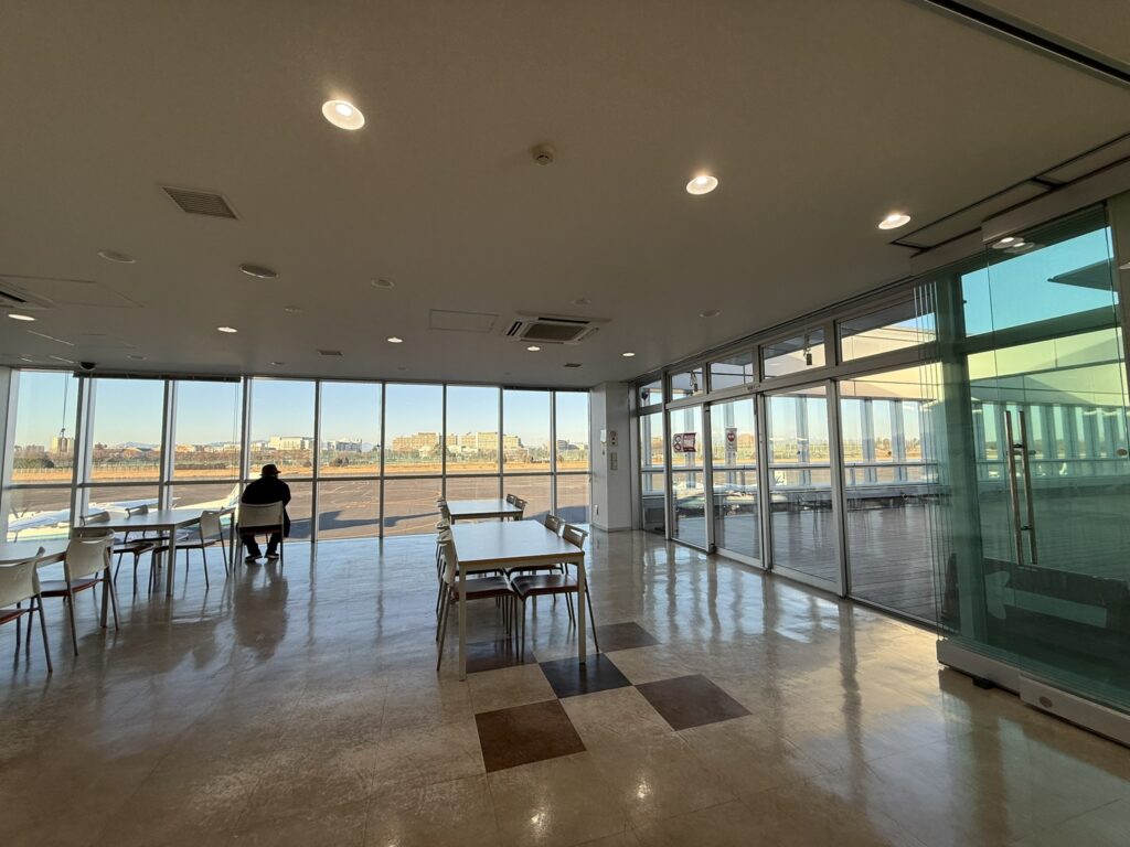 調布飛行場は東京都が運営する伊豆諸島へ向けた空の玄関口。羽田空港や成田空港のような巨大なターミナルではなく、離島便と自家用機が発着するコンパクトな飛行場です。空港の玄関入ってすぐのチェックインカウンターから搭乗口までが近く、移動のストレスが極めて少ないのが利点です。