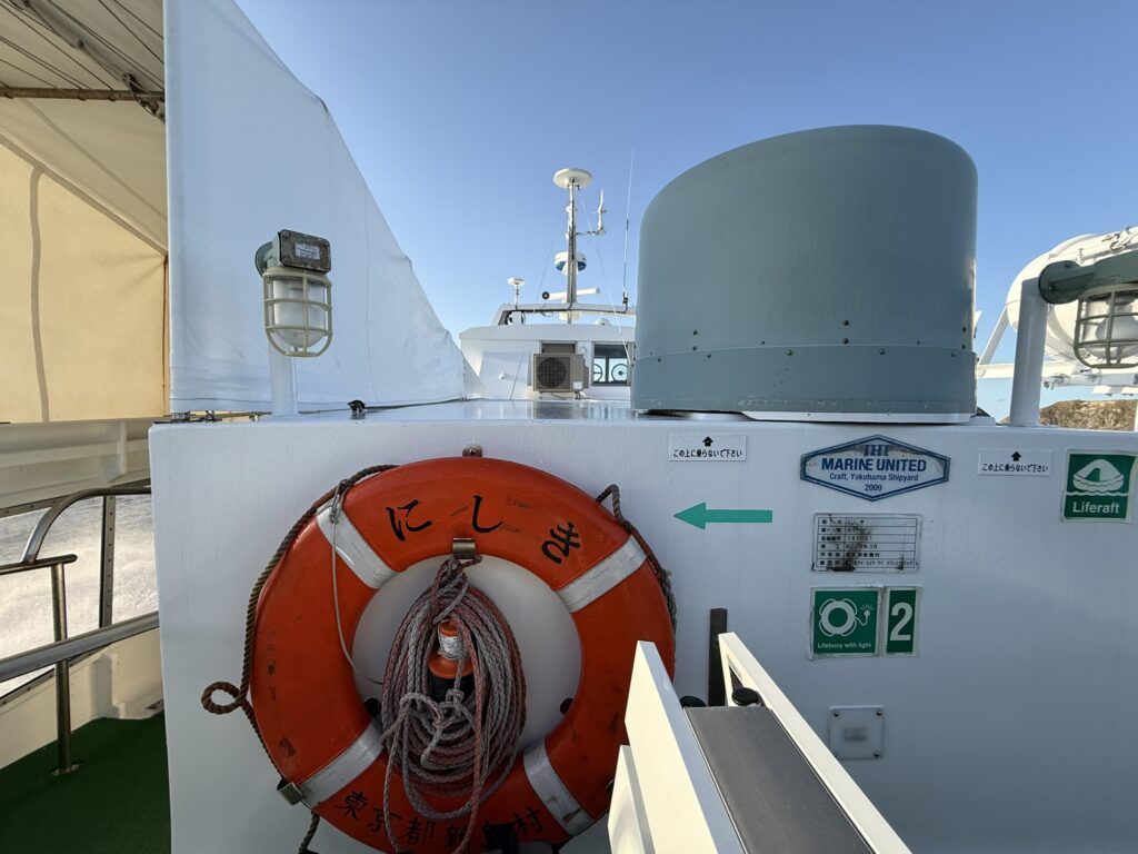 1日3往復の運航で、片道430円(往復840円)で誰もが予約なしで利用可能。観光客や地域住民の足として、両島を繋ぐ重要な公共交通機関です。「にしき」の名前の由来は、新島の「に」と式根島の「しき」です。