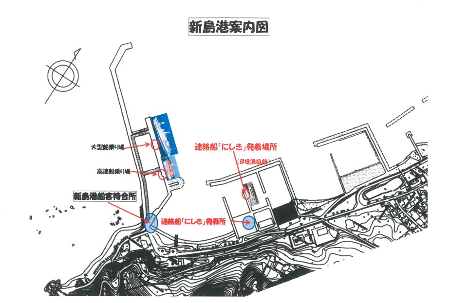 新島村側の連絡船にしき乗り場は新島港のB堤漁協前にあります。