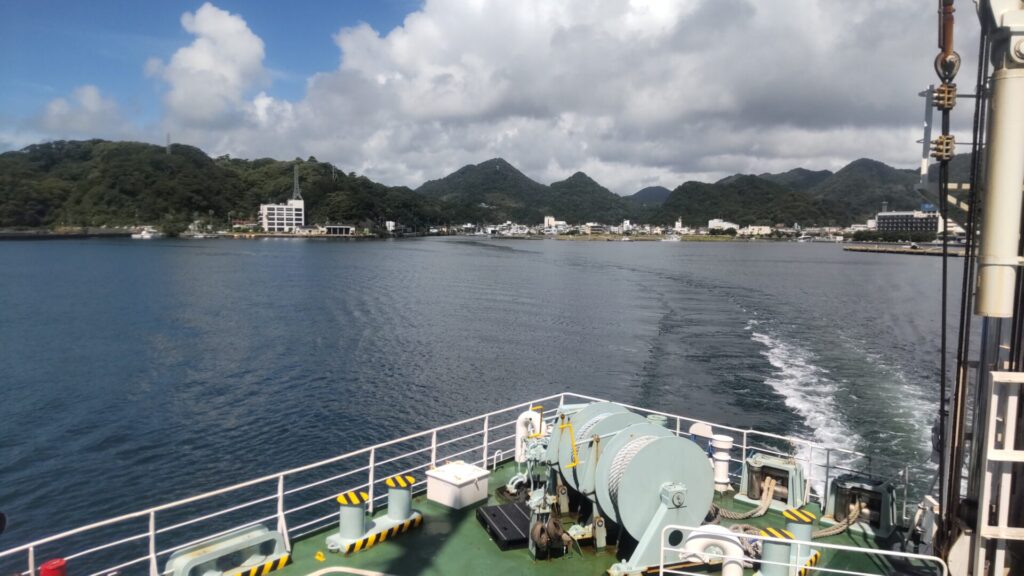 東海道中 現在地 下田港デビュー 2025年11月6日 hidabun 下田に泊まった山ちゃんは初めてアゼリアで帰島。 見慣れた船が見慣れないところにいて新鮮でした。 無事出航。さようなら下田。 やはり式根は見えません。 サルビアとは入港角度が違って新鮮でした。