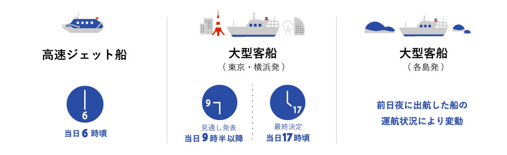 東海汽船が東京から出す船の運行決定をする時間の目安は下記のとおりです。