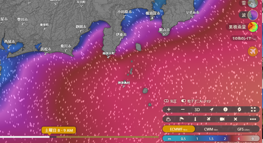 雨や風、波の高さなど、現在から2週間先の予想まで一目瞭然 - 海天気.jp式根島