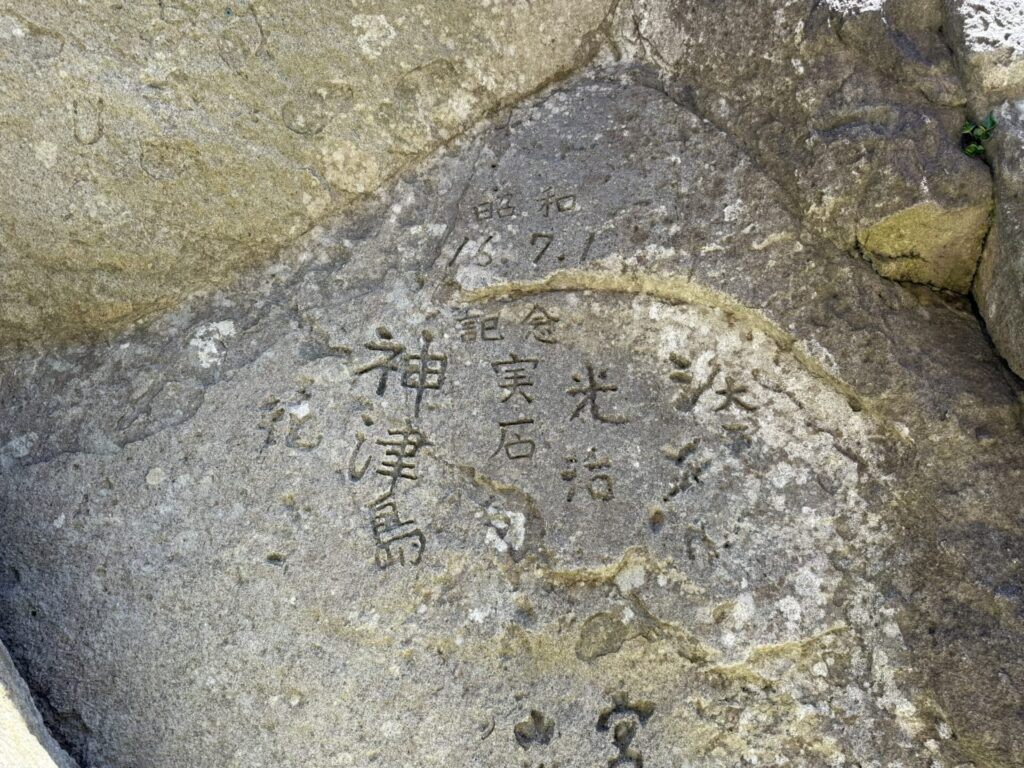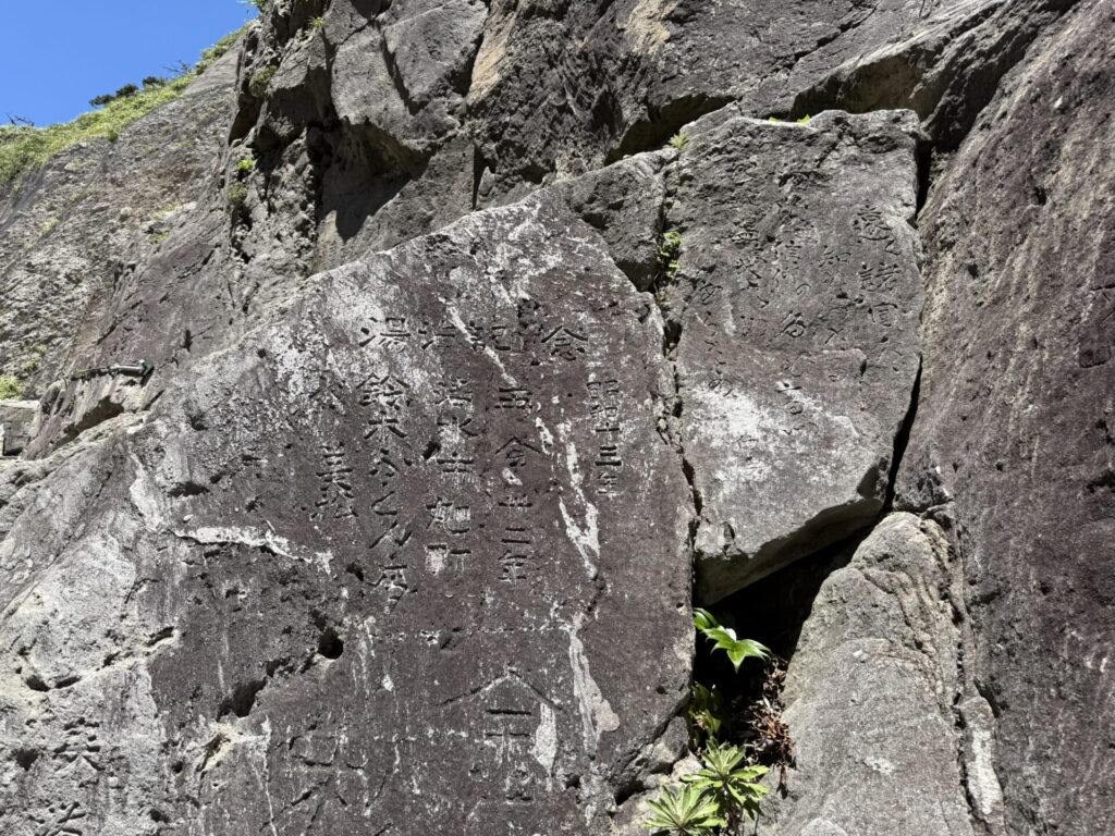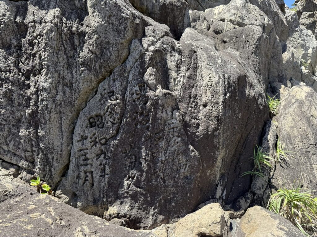 この、公益に資するボランティア行為について、式根島の島民は深く感謝し、これを後世に伝えるため地鉈温泉の岩盤に彰功誌を刻みました。今も読み取れる深々とした刻字で、当時の島民の意気を感じます。彰功とは「功績を表彰すること」、誌は「記録」という意味です。
