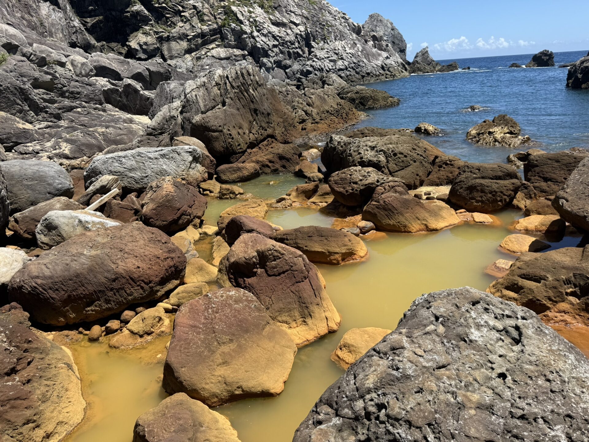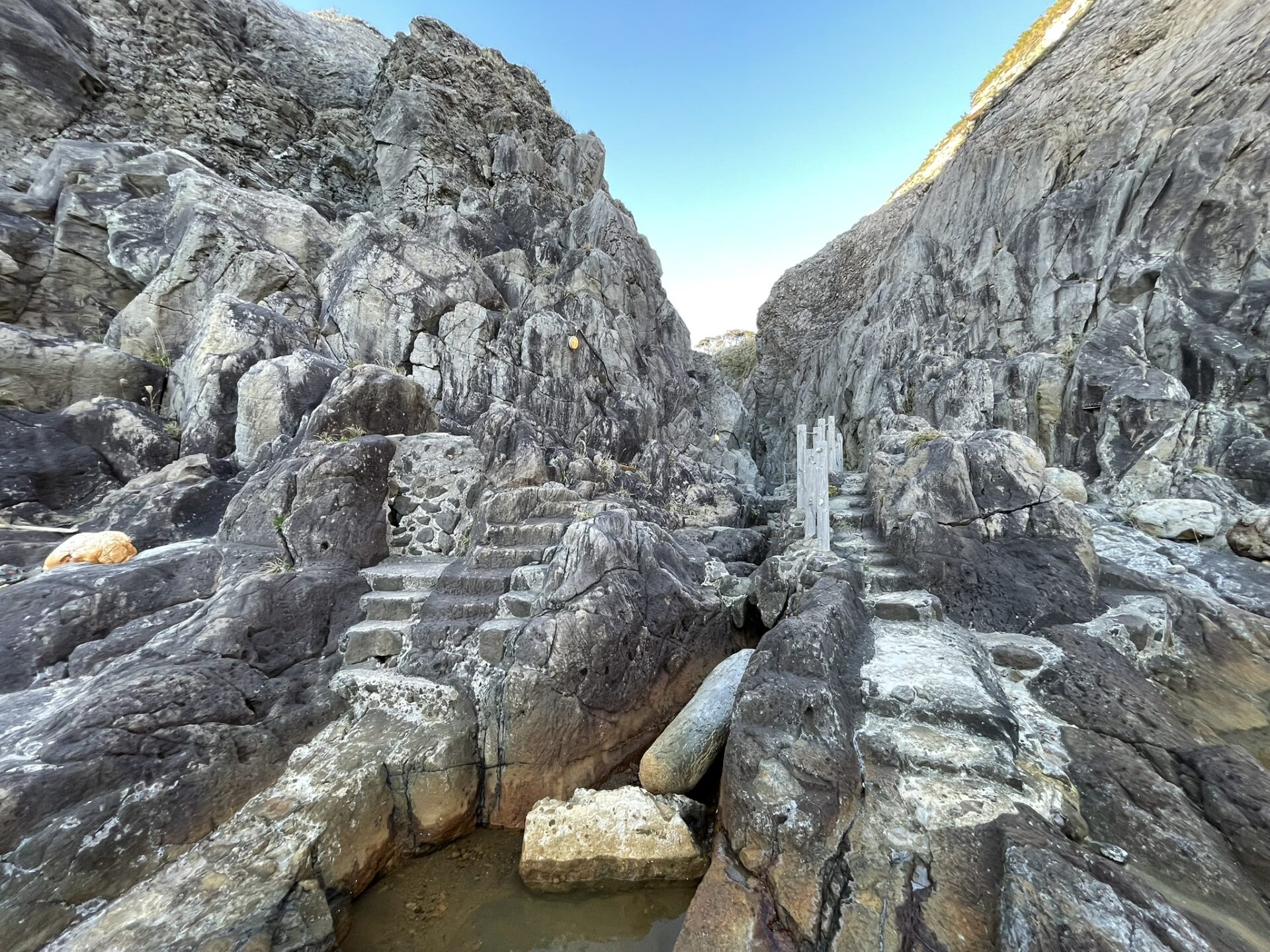 秘境・式根島に来たら、地鉈温泉を訪れ、岩石に彫り記された文字を眺め、先人の思いや苦難の歴史に思いを馳せながら、霊験あらたかな秘湯に身を浸してみてはいかがでしょう。