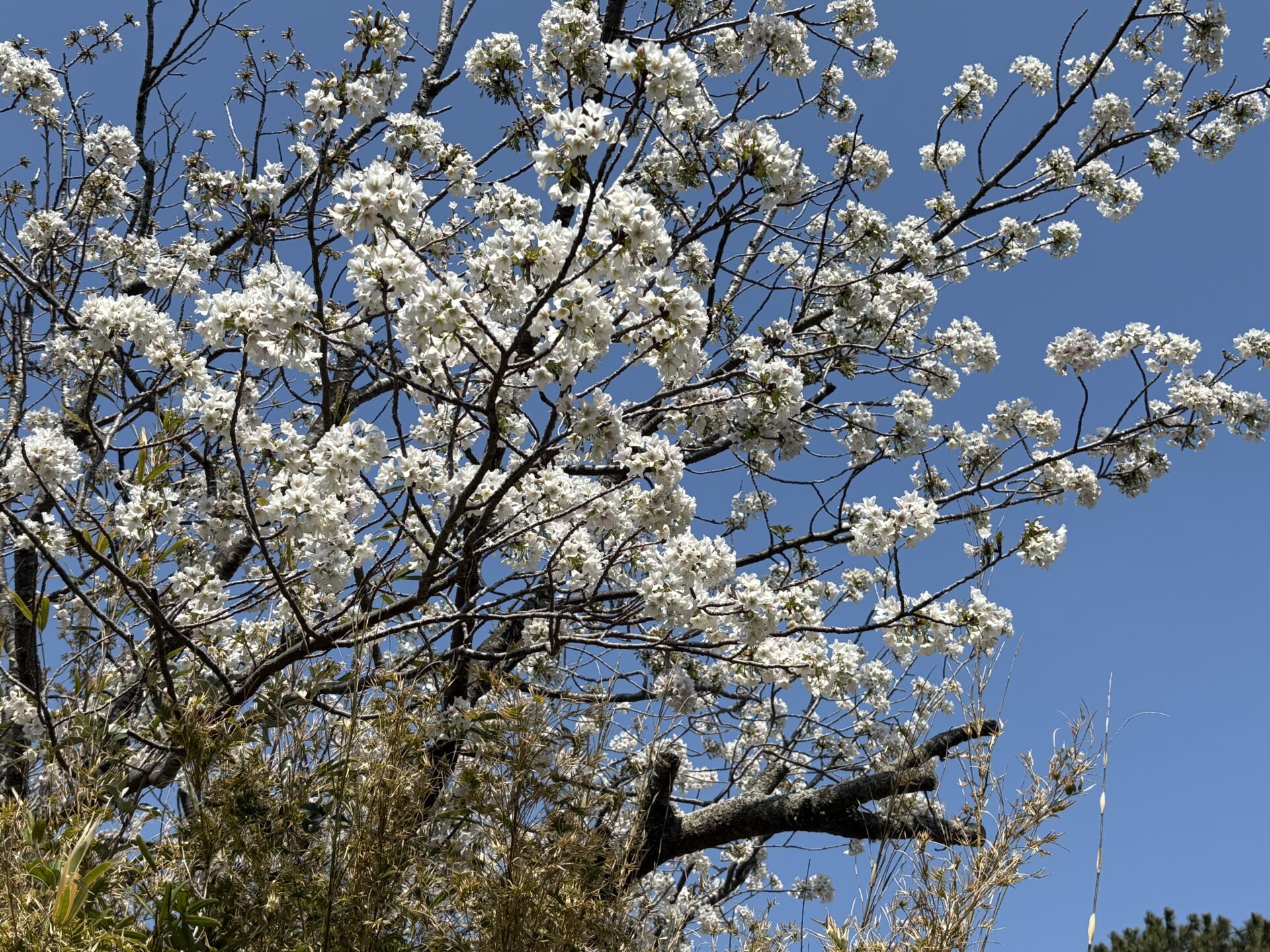 同じ日に全部咲きそろうソメイヨシノは美しい品種ですが、ばらばらに咲くオオシマザクラもまた個性豊かで愛らしいものです。式根島でお気に入りのオオシマザクラを見つけてみませんか。