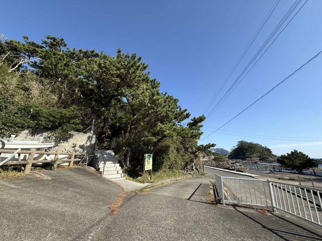 足付漁港の船揚場横の避難階段より、高台に上がってください。