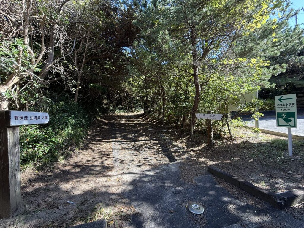 式根島は、要所要所に高台へ続く避難路(急な階段状の小道)が用意されています。利用頻度が低く、雑草が生い茂っているなど足場の悪い場所がありますが、いざとなればあなたの命を救います。夜間は、懐中電灯やスマホで足元を照らし、落ち着いて避難してください。 - 島内の道について