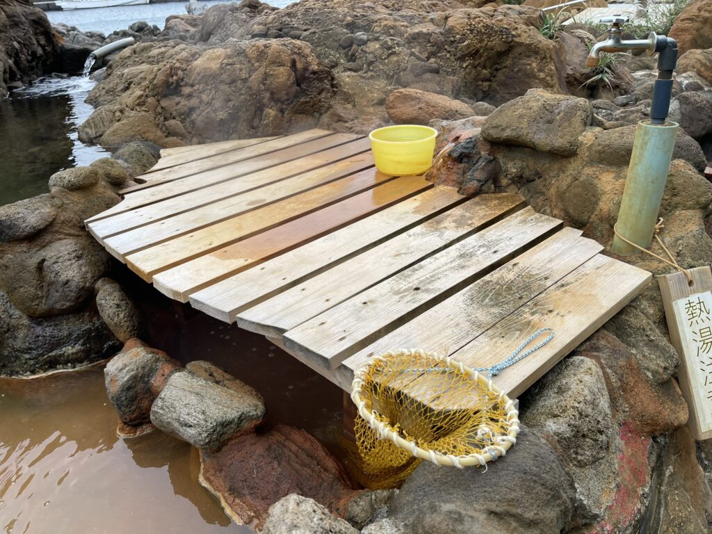 地球パワー地熱パワーさく裂の証、それが天然温泉。式根島は温泉マニア垂涎の足元湧出自噴温泉の宝庫です。その恵みを文字通り「味わえる」のが源泉に浸して作る温泉玉子ではないでしょうか。しかし、いったい、何分沈めればよいのか?諸説が錯綜していますので、島民を代表して、ひだぶんが実験してまいりましたので、ここに研究成果を発表したいと思います!夜に星空を見ながら露天風呂に入って、温泉たまご作りなんて、一生忘れないロマンチック(?)な思い出になりますね!