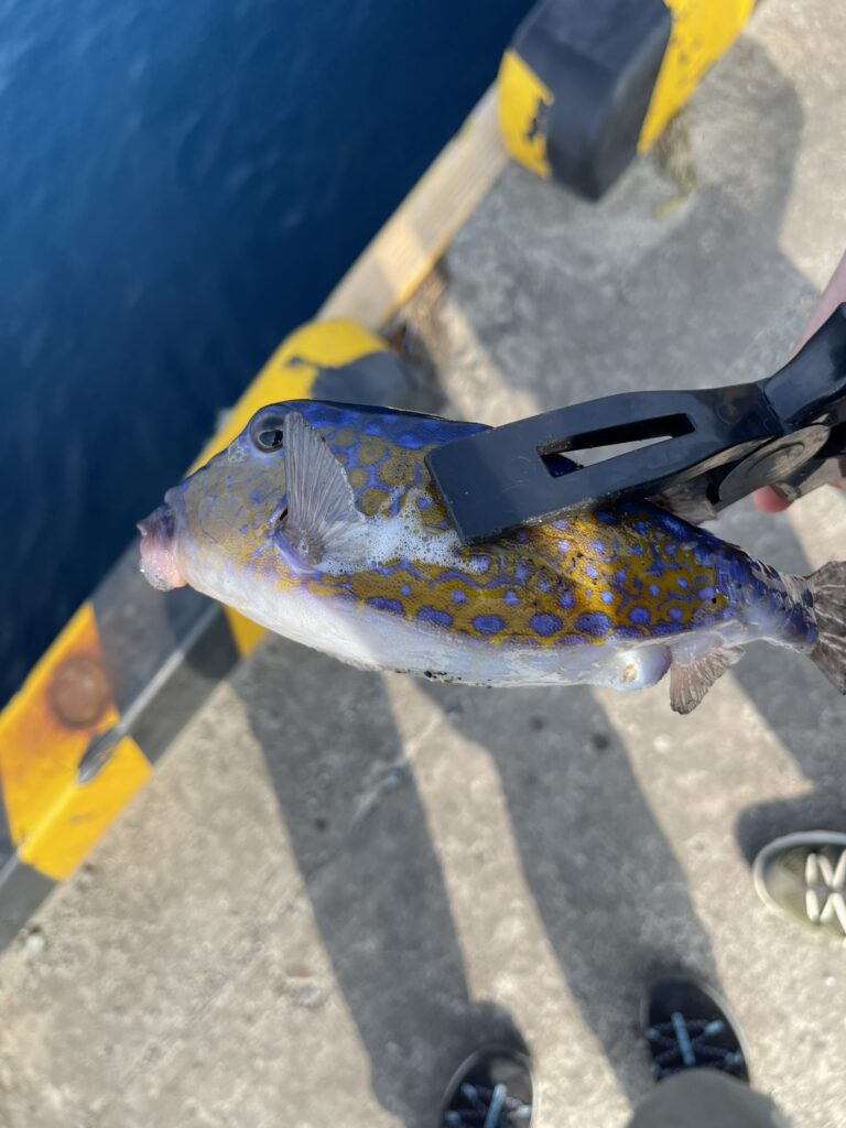 釣った魚の種類を見分け、持ち帰るか決めます。毒があったり、噛む、刺すなど怪我の恐れがある危険な魚もいますので、軍手やタオル、魚はさみを使い、素手で魚を触らないようにしてください。