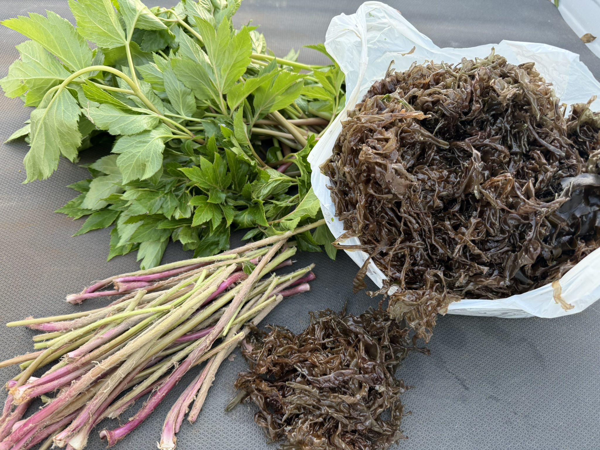 明日葉、海苔、ふきんとうは、式根島の早春の味覚の代表です。