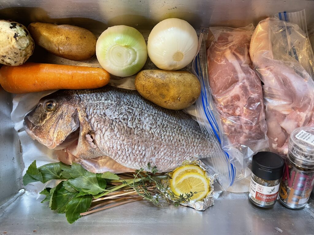 宿泊者限定ですが、ゲストハウスひだぶんのBBQスペースはダッチオーブンやスキレットなど、おしゃれキャンプに役立つ調理器具のレンタルやミールキットがあります。心地よい季節だから、時間がかかる野外料理に挑戦してみてはいかがでしょう。釣りも良い時期なので、GETした魚をそのまま使えるアクアパッツァや漁師鍋に挑戦するのも楽しいですね。