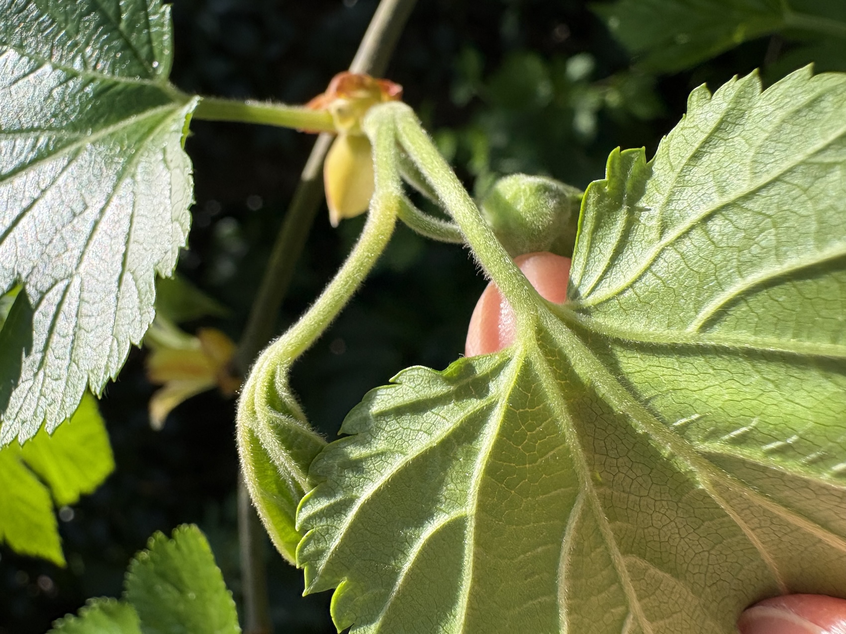 花の向きが違うということは、ハチジョウイチゴとカジイチゴでは花粉を運ぶ昆虫の種類が異なっているのかもしれません。一般的に下向きの花には、逆さまにぶら下がる脚力のあるハナバチ類が訪れます。下向きの花は主にハナバチ類を「お客」として呼び、効率よく花粉を運んでもらっていると考えられています。一方で上向きの花は誰でもウェルカム。ぶら下がれない甲虫やハエの仲間も来るかもしれません。