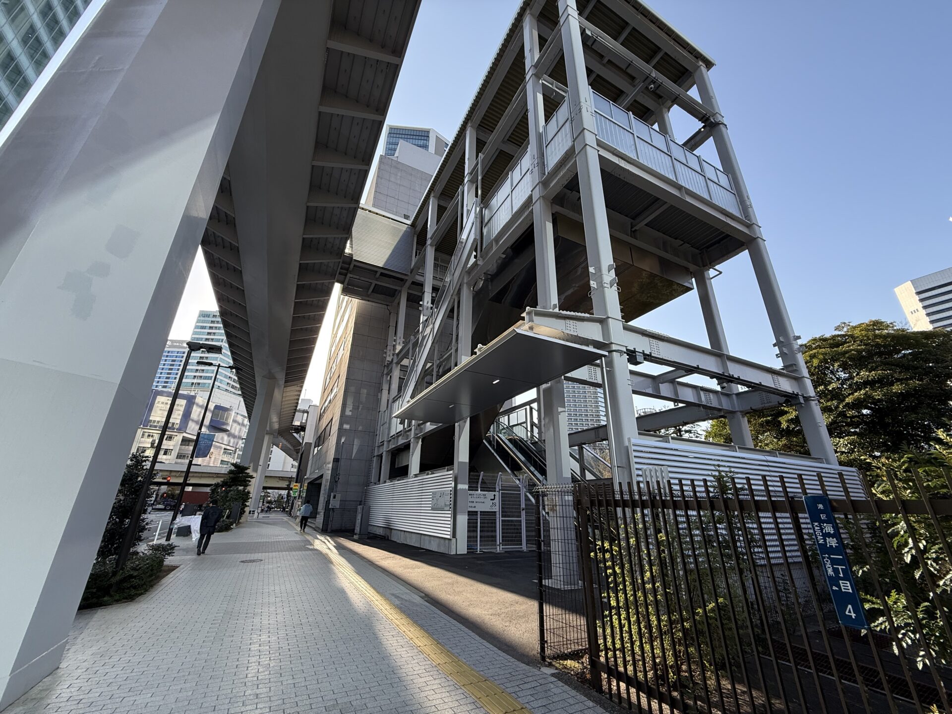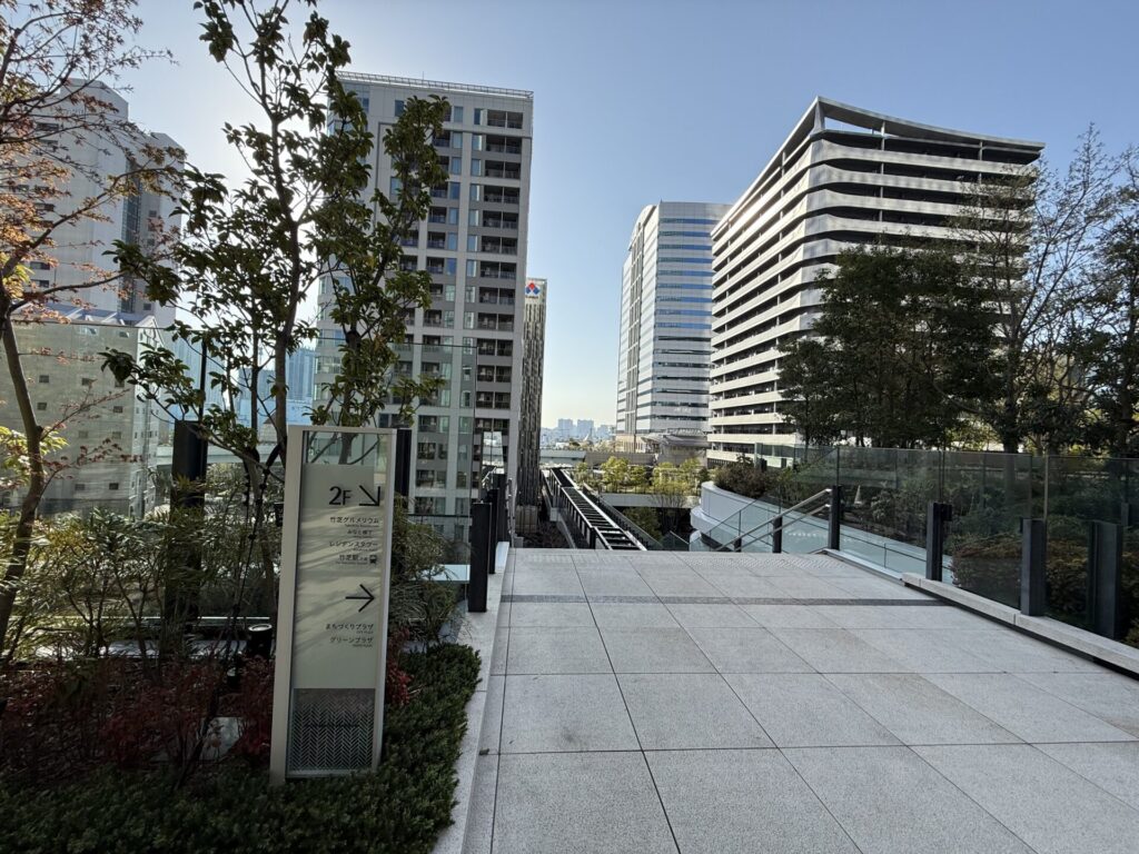 東京ポートシティ竹芝の中を通ります。身軽な人はそのまま突き抜けて外階段を降りればOK。