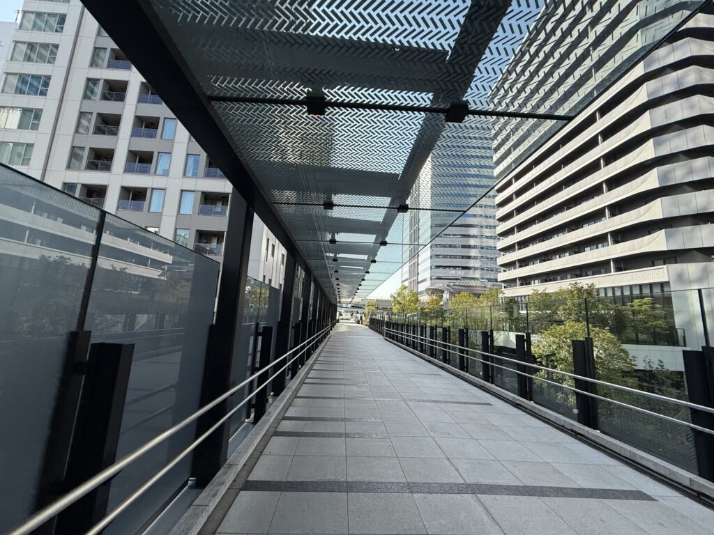 500mほど歩きます。途中で東京ポートシティ竹芝のビルの中を通ります。
