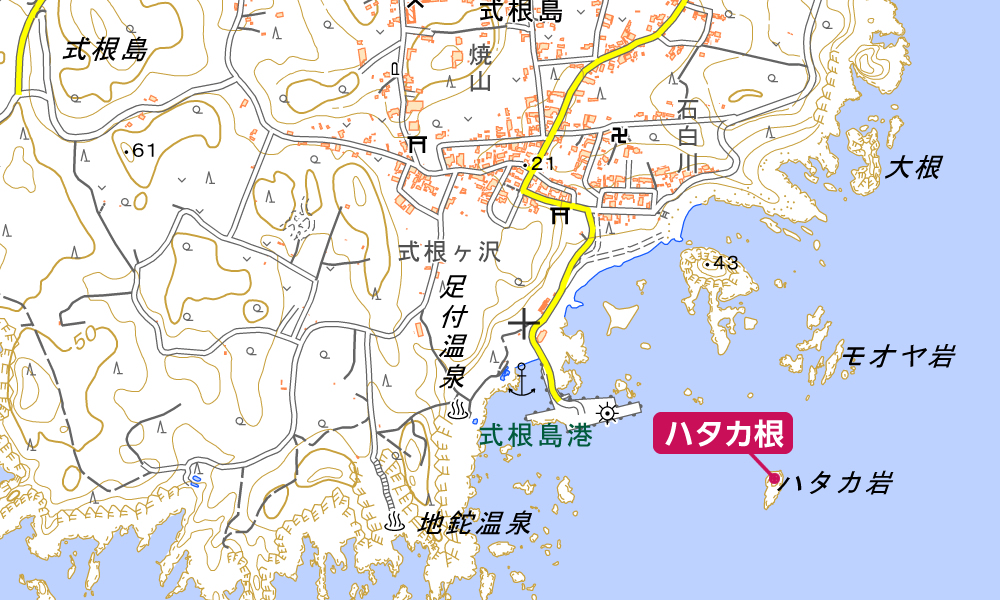 | 備考 | 式根島の代表的な沖磯。神津向かい、三宅向かい、新島向かいとあり、神津向かいは直接船をつけてもらわないと移動が危険 |