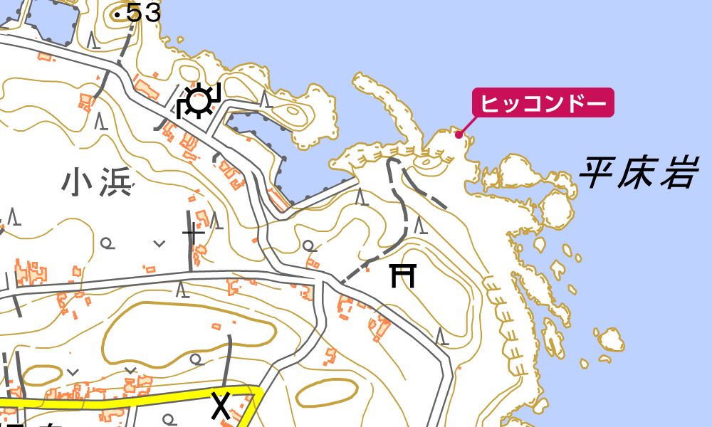 | 行き方 | 小の口公園から降りて海岸線沿いに徒歩 |