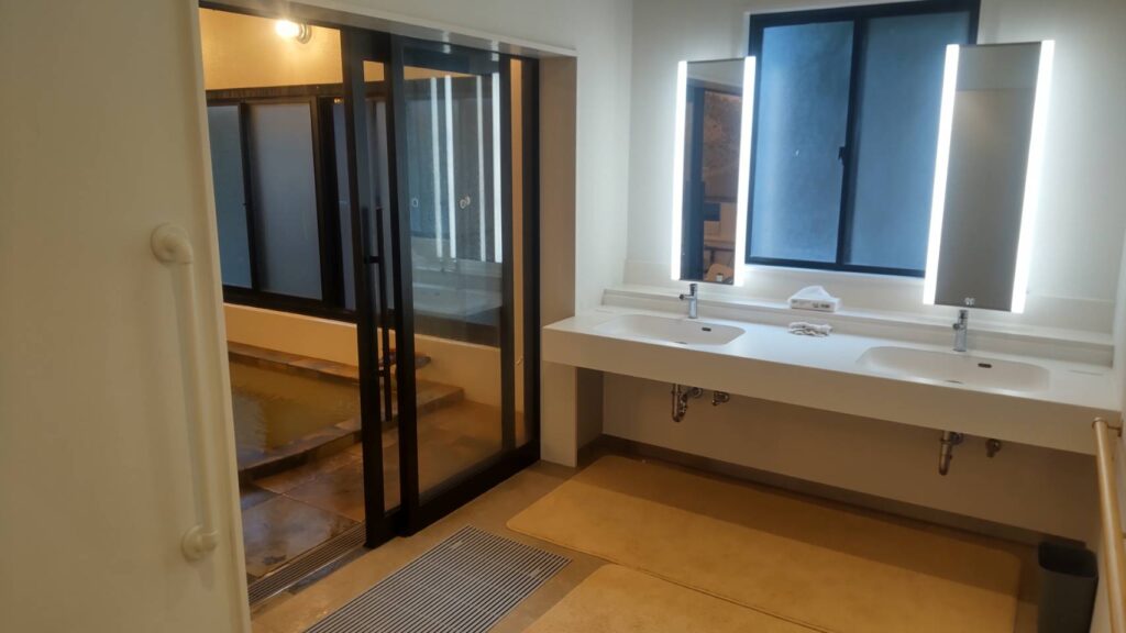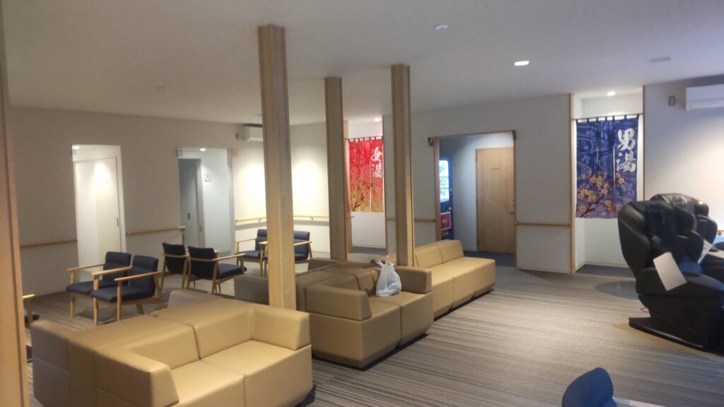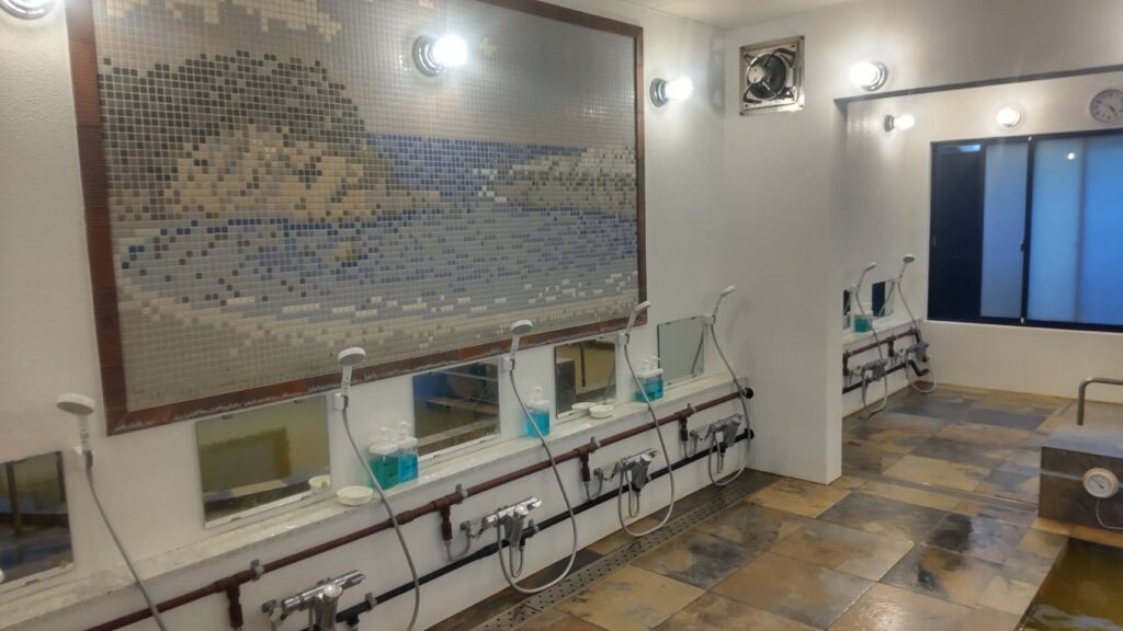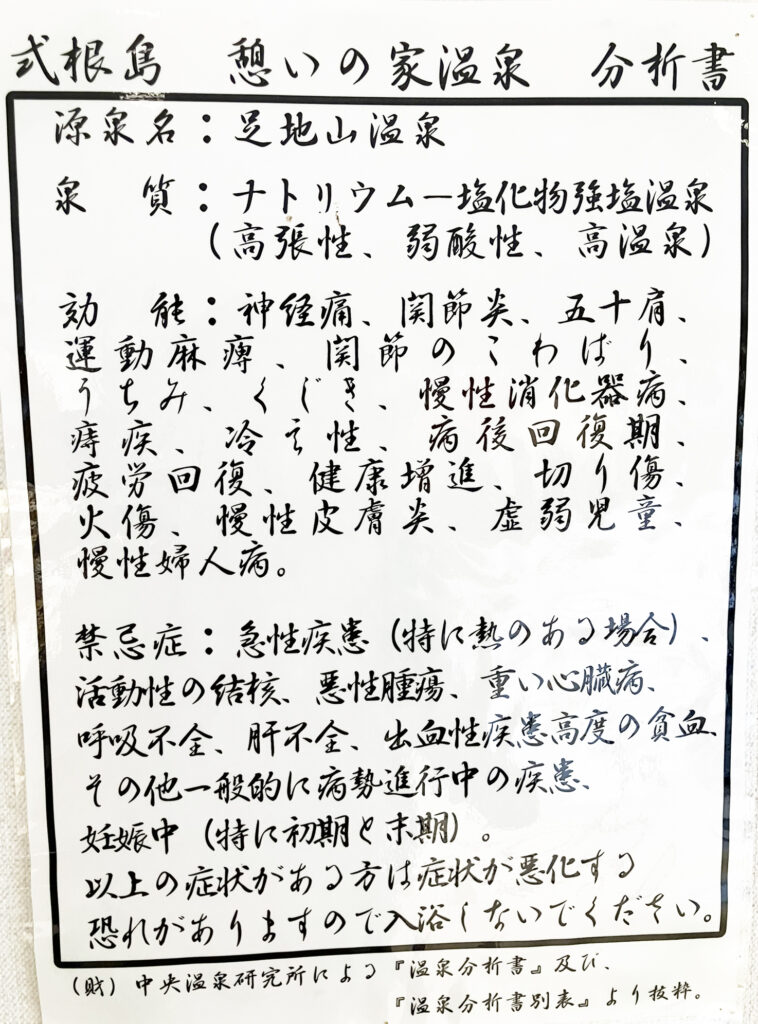 2025年にリニューアルし、利便性が向上した浴場「憩の家」。地鉈温泉に類する温泉を、洗い場がついた内湯の男女別浴場で楽しめる。島民のくつろぎ場であるが、観光客も利用OK。料金も200円と手頃で、コインロッカーやマッサージチェア(有料)など完備する。20時まで営業(受付は19時半)するので、夕食後に利用して星を見ながら帰る、というのもおすすめ。