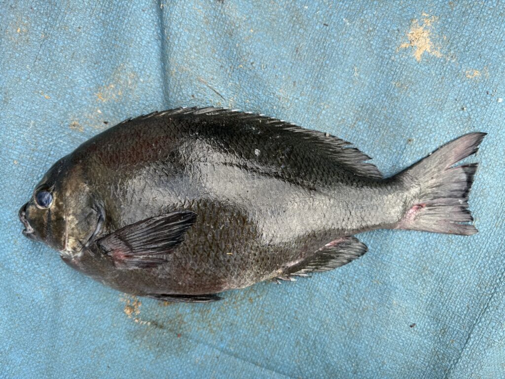 今回、目にしたのは、ブダイ、イスズミ、メジナ、ニザダイ、カサゴ、タカノハダイ、タカセガイ、バンバエビなど。昔と変わらぬラインナップのようですが、大きな変化があります。それは、エビ網に海藻がかからないこと。昔は、エビ網をさらったあとは、大量の海藻のはき掃除をしなくてはいけませんでした。それが今では、全くついていません。黒潮大蛇行の影響なのか、近年は高水温が続き、式根島の海の磯焼けは深刻です。伊勢海老の生息域の変化による不漁も問題視されています。