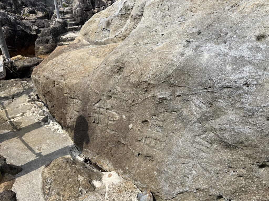 あたりの岩石には、多くの湯治客の名や感謝の気持ちが刻み印され、その入場者も全国にわたっていることがうかがえます。新島村教育委員会