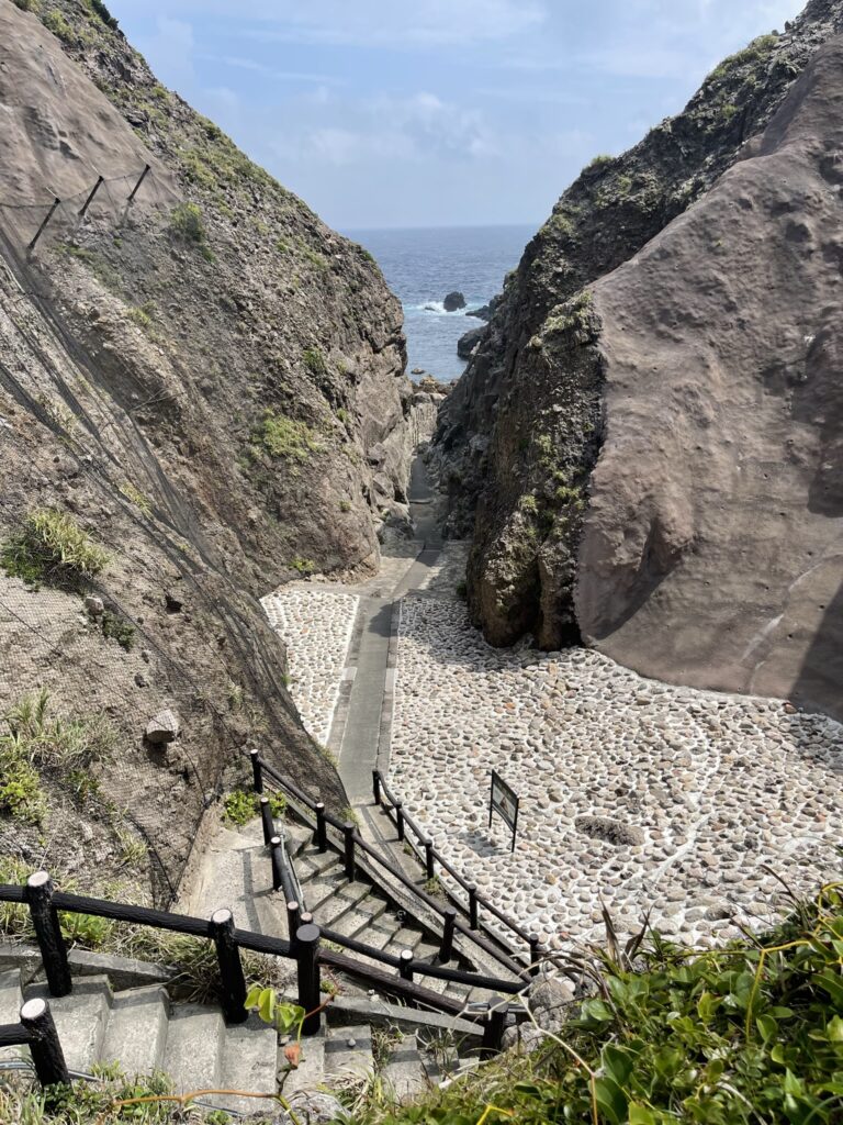 源泉温度80度!断崖の峡谷に湧く、式根を代表する豪快野天風呂
