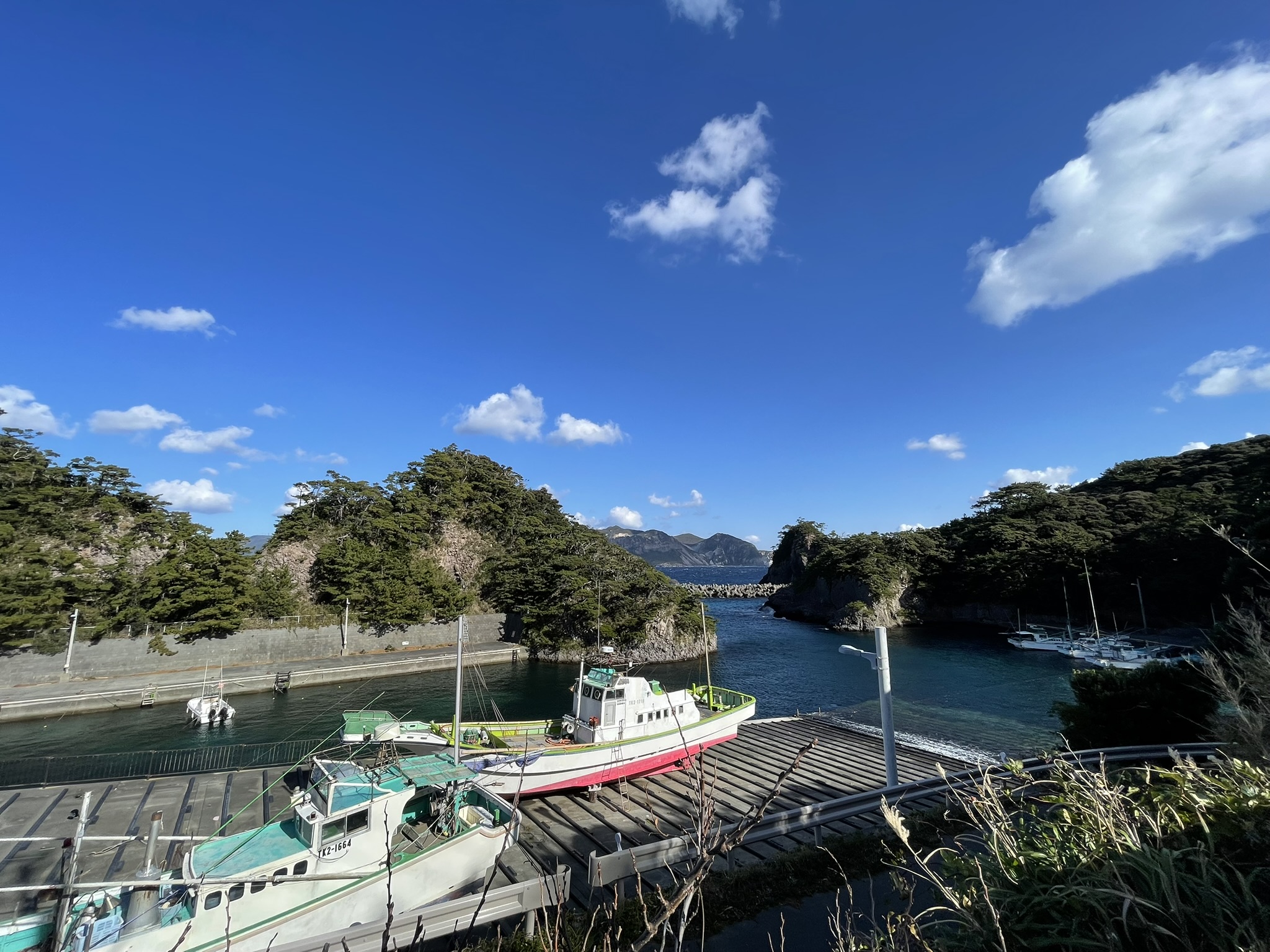 港 小浜漁港|Kobama Fishing Port 2025年7月17日 hidabun 小浜漁港 野伏漁港と一体的に利用される静かな漁港 小浜(おはま)漁港は式根島北東部に位置する天然の地形をいかした小さな漁港で、島の漁船に野伏漁港と一体的に利用されている。海岸線の岩石に生えるクロマツと静かな漁港の佇まいが式根島らしい旅情をそそる。 DATA -