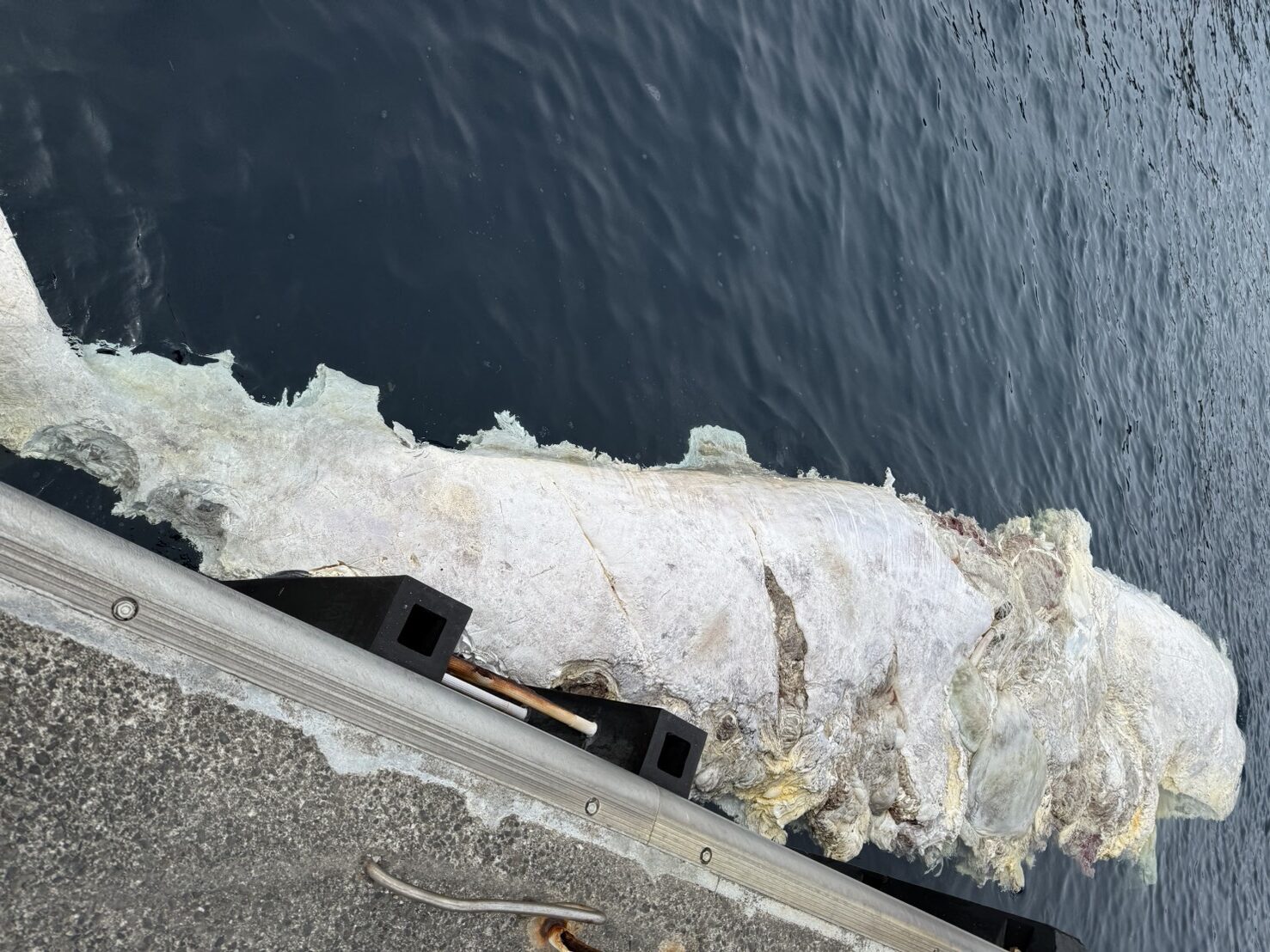 mだいぶ腐敗が進んでおりますが、全長10mある巨体で、どうみてもクジラの死体です。種類はわかりません。