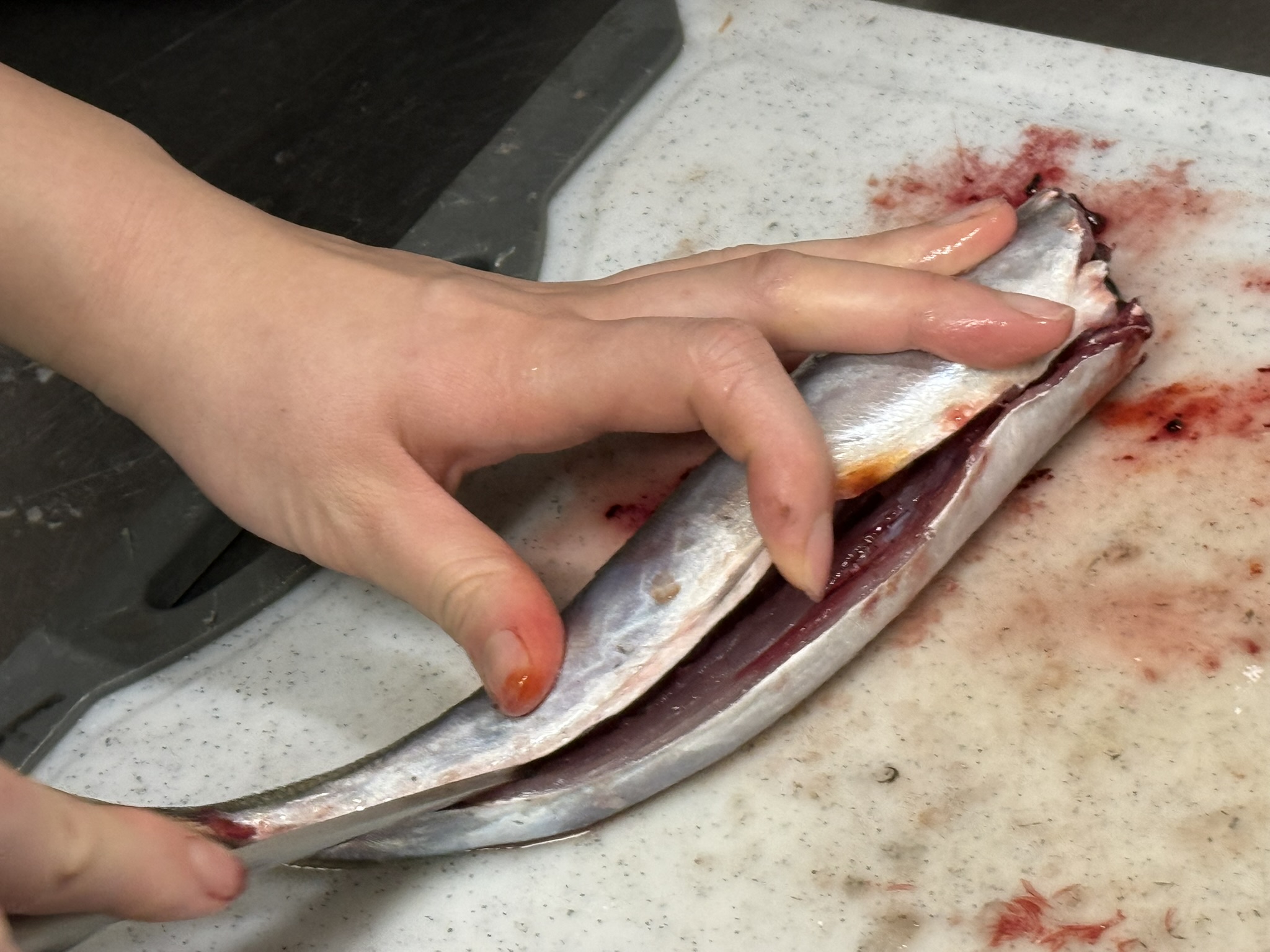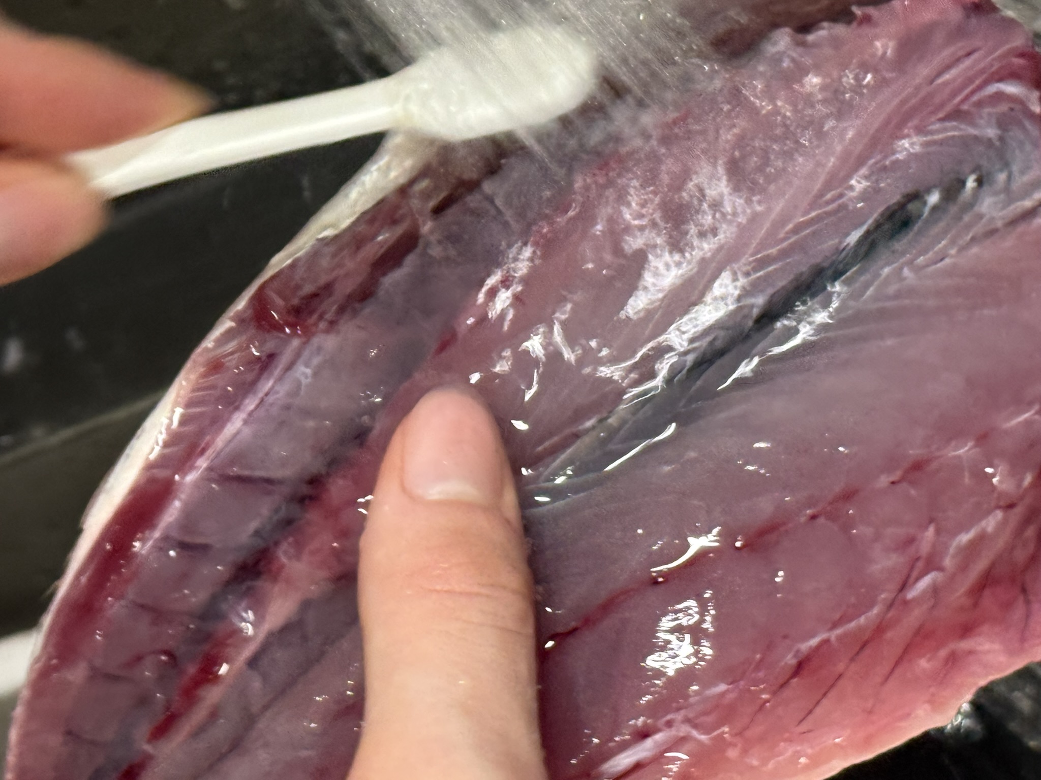 - 水で洗って血合いを掃除する