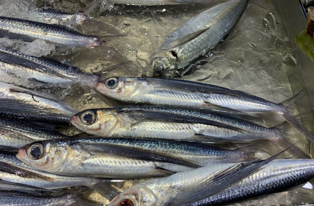 式根島でくさやにされる魚は、一番多いのはアオムロ(クサヤモロ)で、次にムロアジ。昔はよく穫れたトビウオなどです。