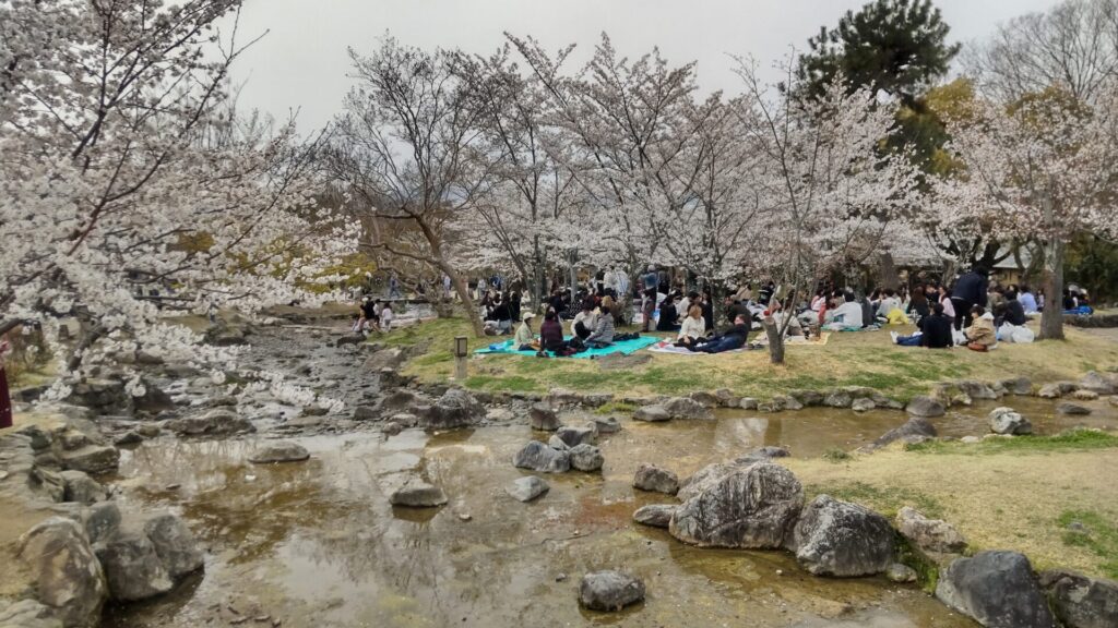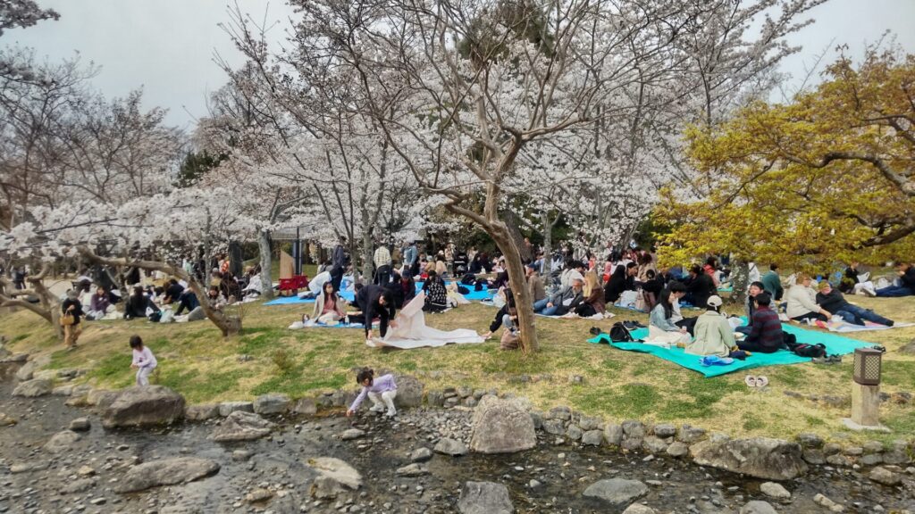 皆さん、円山公園で花見やってます。